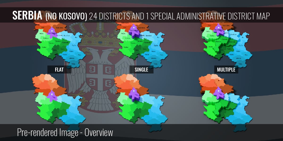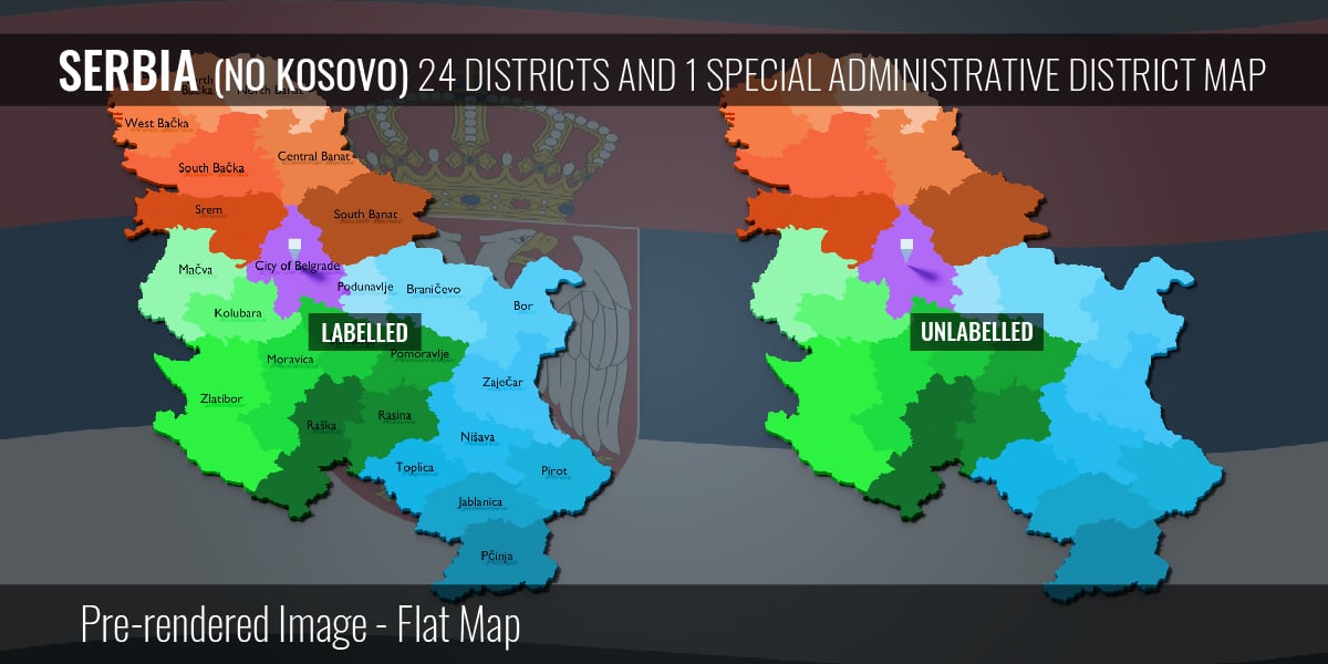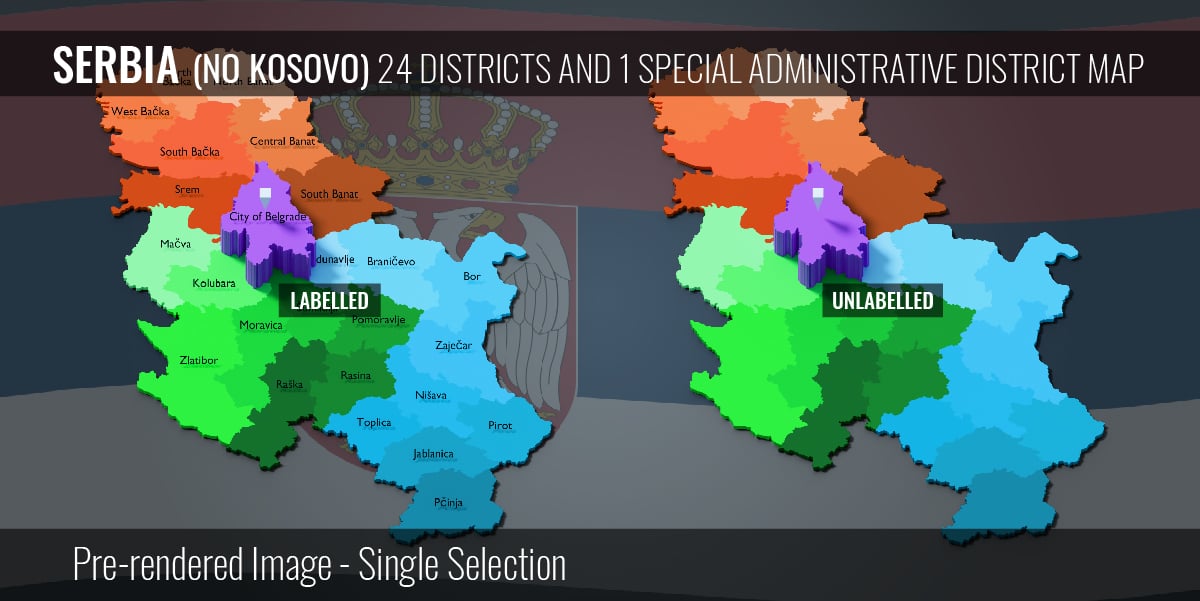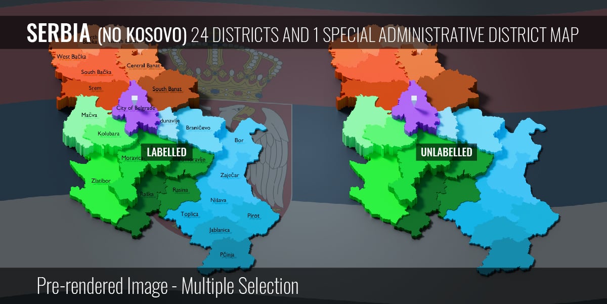 Serbia (No Kosovo) - 24 Districts and 1 Special Administrative District Map (3D + Pre-rendered Images)