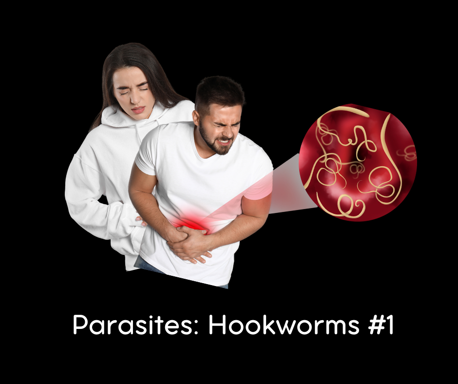 Parasites and Hookworm can cause many gut symptoms.The common symptom for hook worm is a skin rash and itching and is followed by anemia. Hook worm encases itself in a biofilm when it bites into your intestine wall. If diagnosed correctly, playing this FSR over you belly can stop the discomfort. You will need to play all parasite FSR's for at least 30 min a day for a week or two.