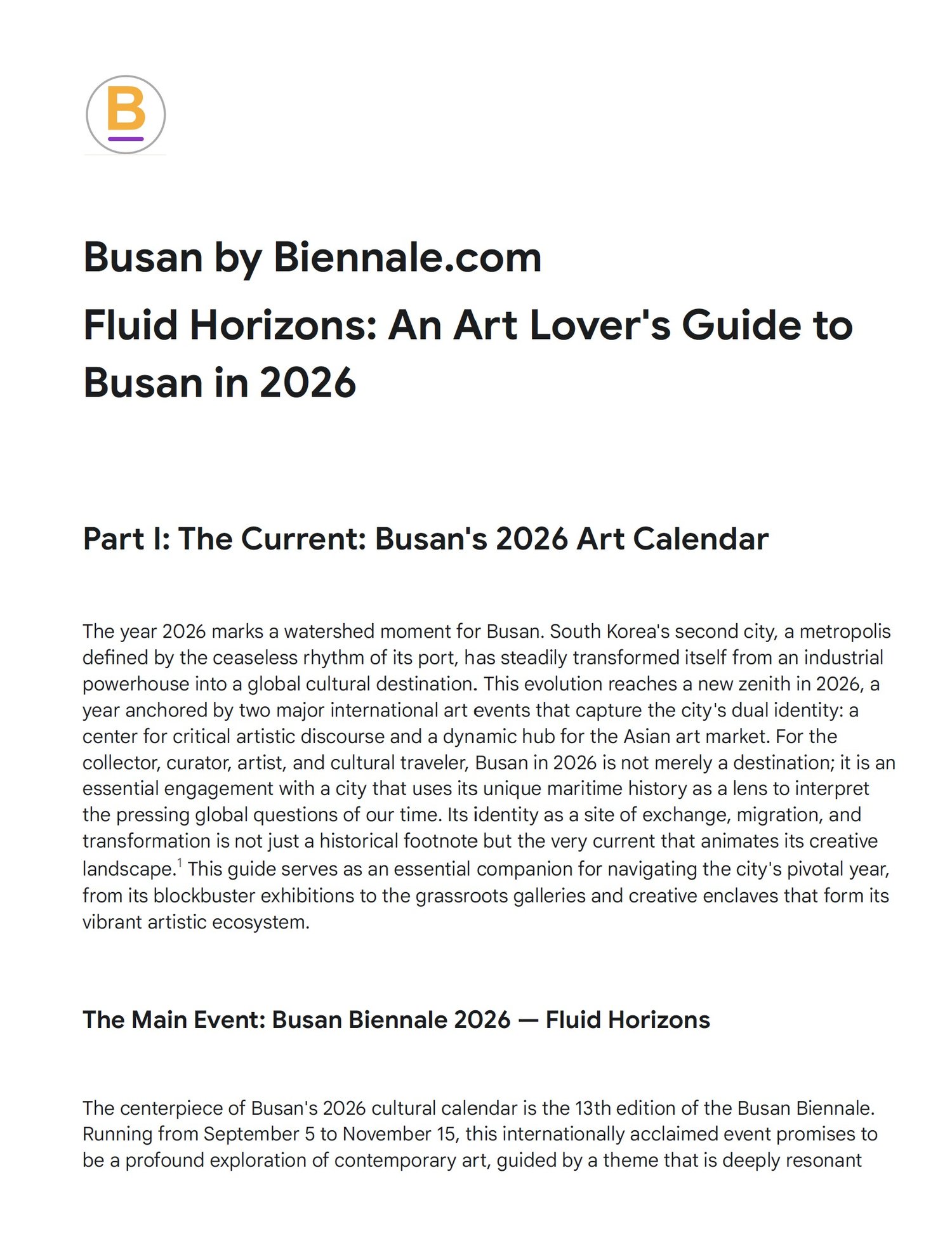 Your indispensable companion to Busan 2026—art, travel, and oceanic horizons in one essential guide.