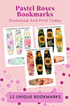 12 Pastel Roses Bookmarks | Printable Rose Bookmarks | Pastel Bookmarks |Printable Pastel Roses Page Holders | Gift For Readers