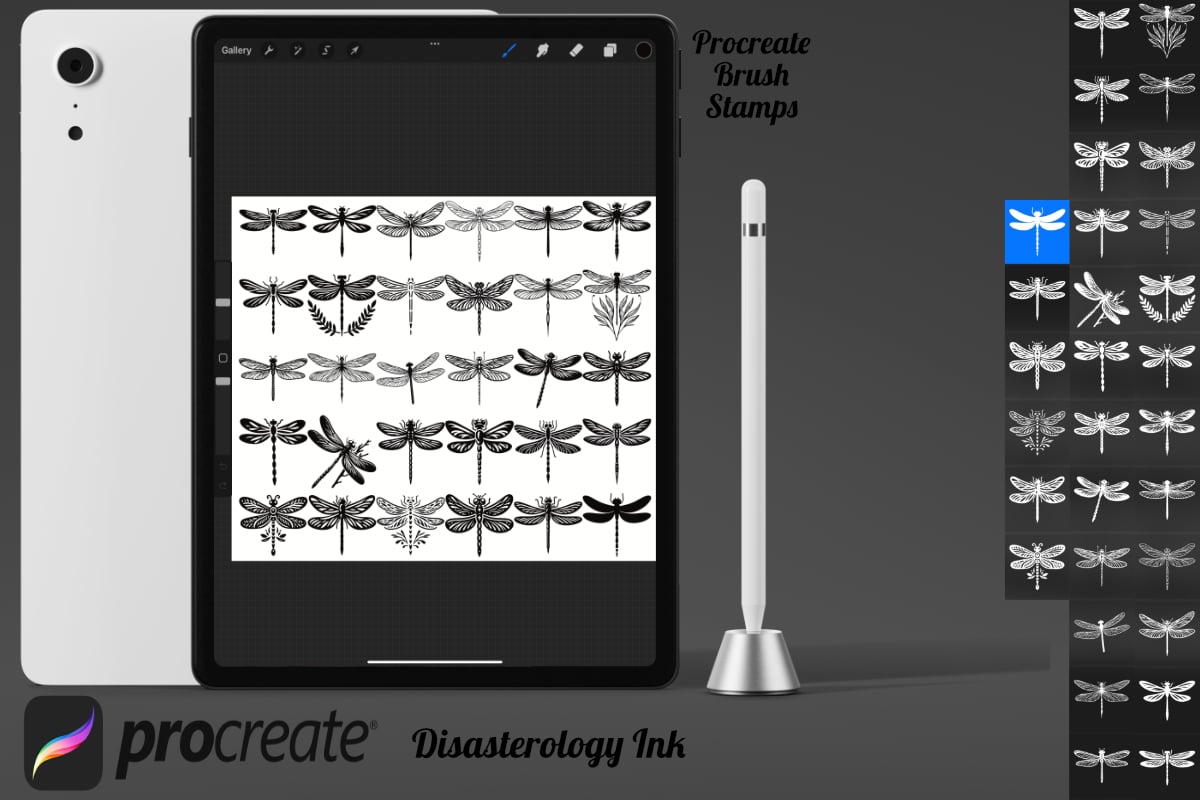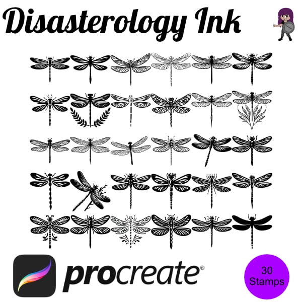 Dragonflies Set 1 Procreate Brush Stamps, 30 Dragonfly Stamps