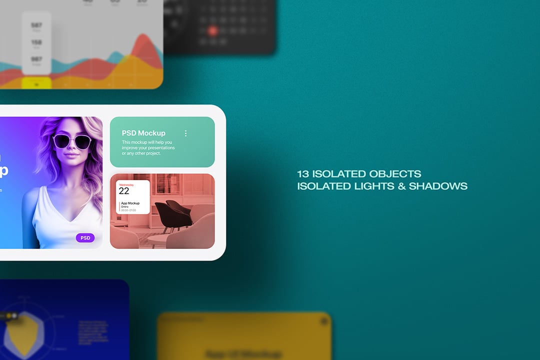 Showcase your app UI and digital designs with this versatile set of 13 photorealistic horizontal phone screen mockups, featuring diverse perspectives and easy customization — 7500 × 5500 px at 300 DPI.