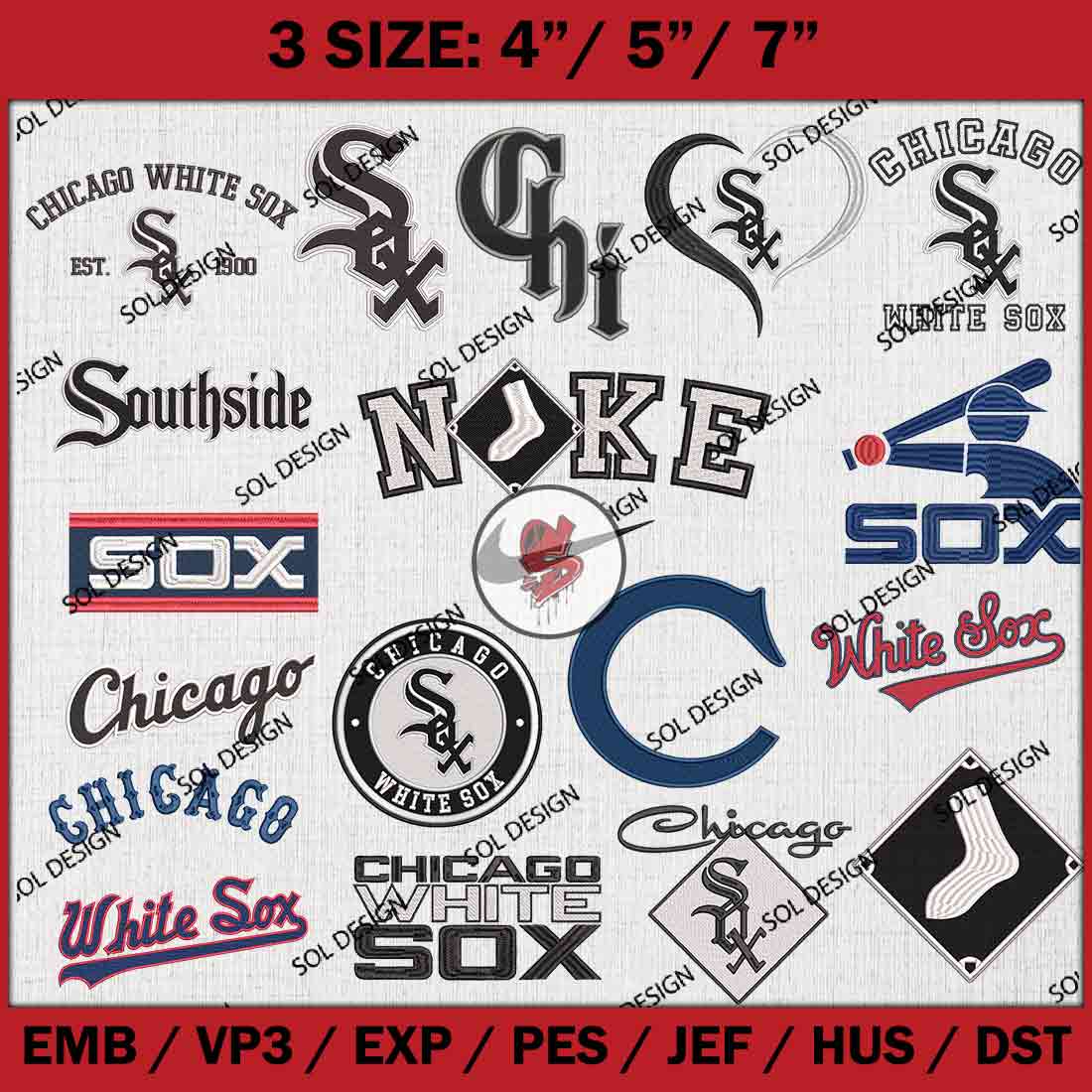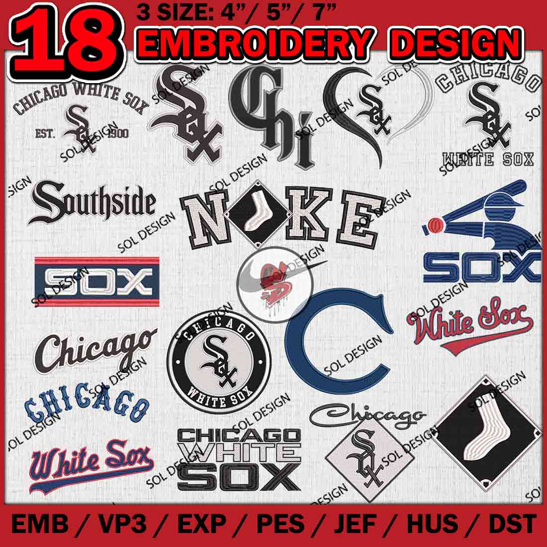 18 Chicago White Sox MLB Team Bundle Embroidery Designs, MLB Chicago White Sox Embroidery Designs, MLB White Sox Machine embroidery Designs Bundle, Baseball Team Bundle, Digital Download