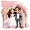 Chibi wedding, bride, groom & accessories. 9 brides, 9 grooms, 3 dress colours,3 suit colours, 3 tie colours. Background. Sublimation, print