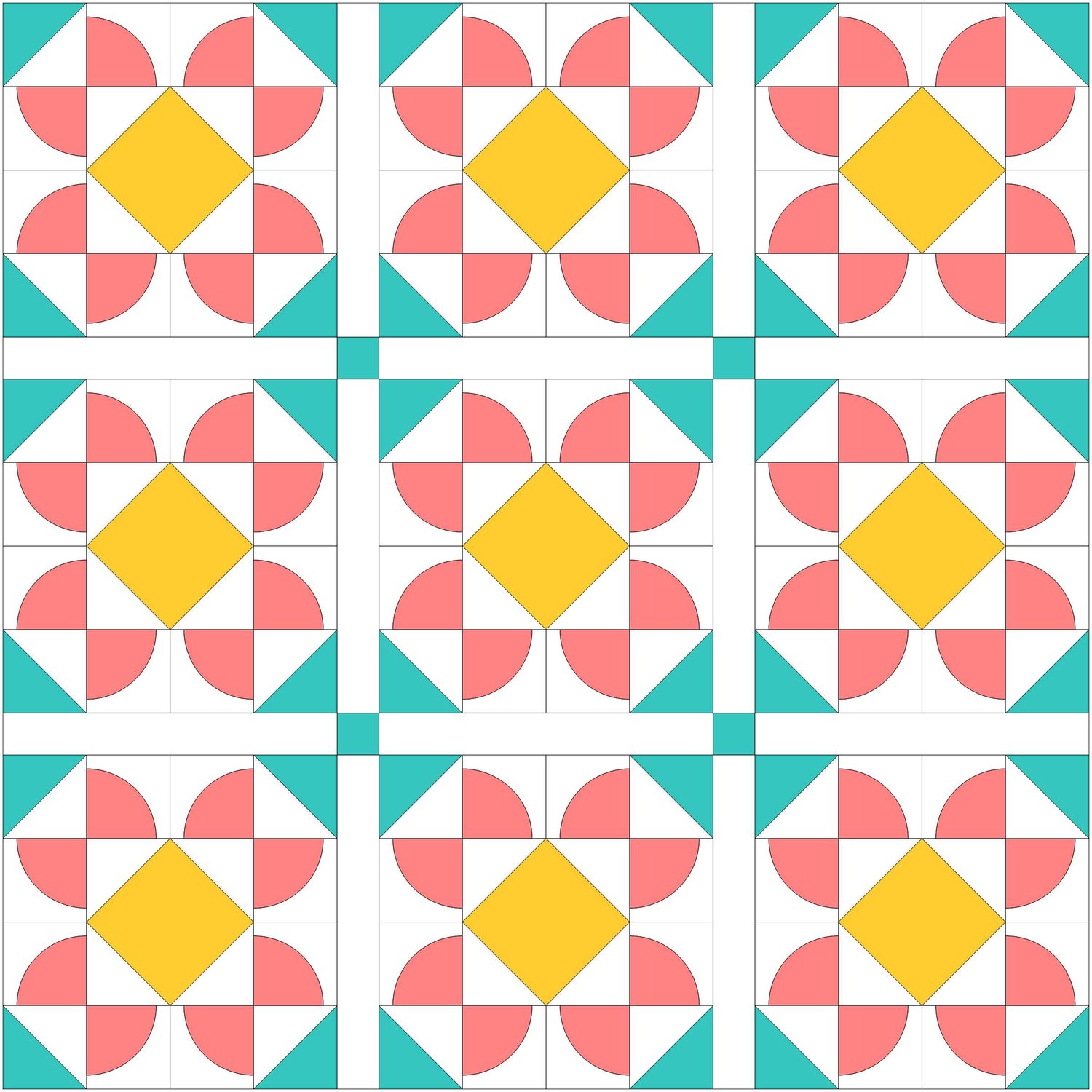 This modern design uses BIG 20” blocks that sew together quickly and show off your favourite fabrics beautifully. No fiddly templates. No frustration. Just curves you’ll actually enjoy sewing.