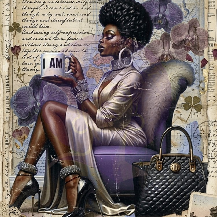 You’re not just downloading art; you’re unlocking an elegant vibe. This "I AM" Sideview Diva Masterpiece is dripping in boldness, beauty, and brilliance, made to reflect the richness of our skin, the power of our presence, and the softness of our glow.