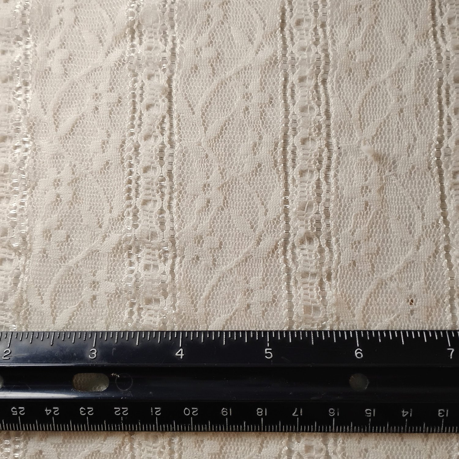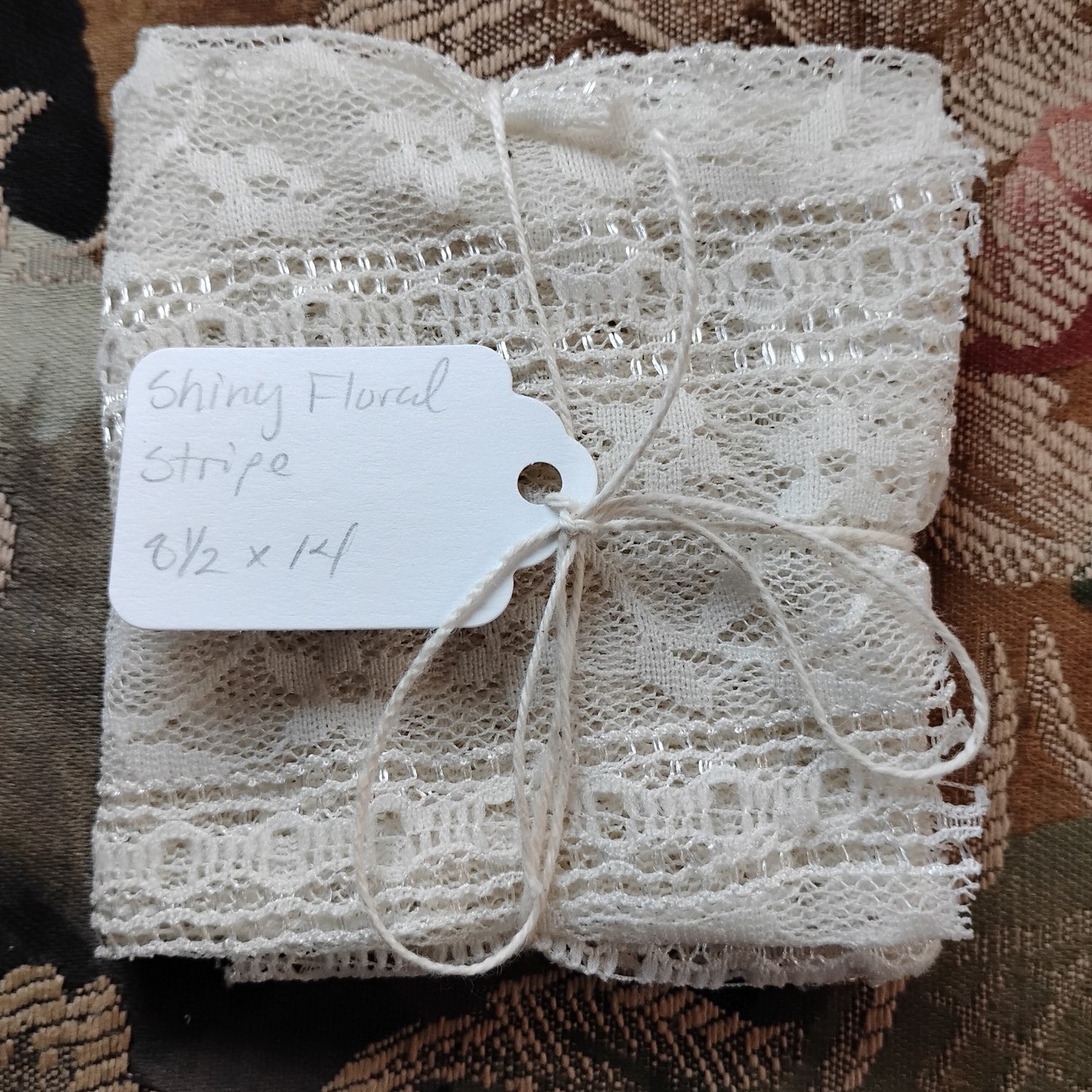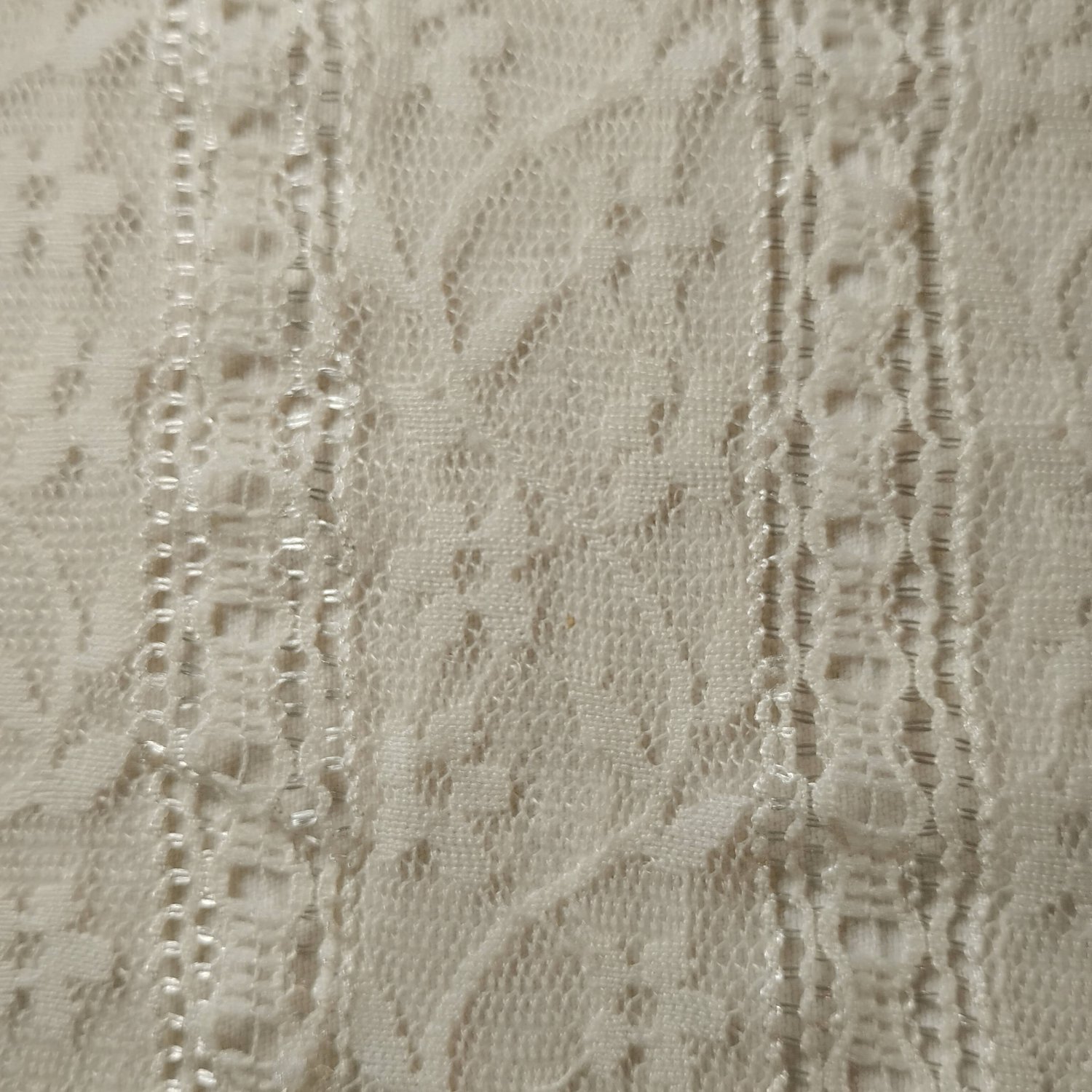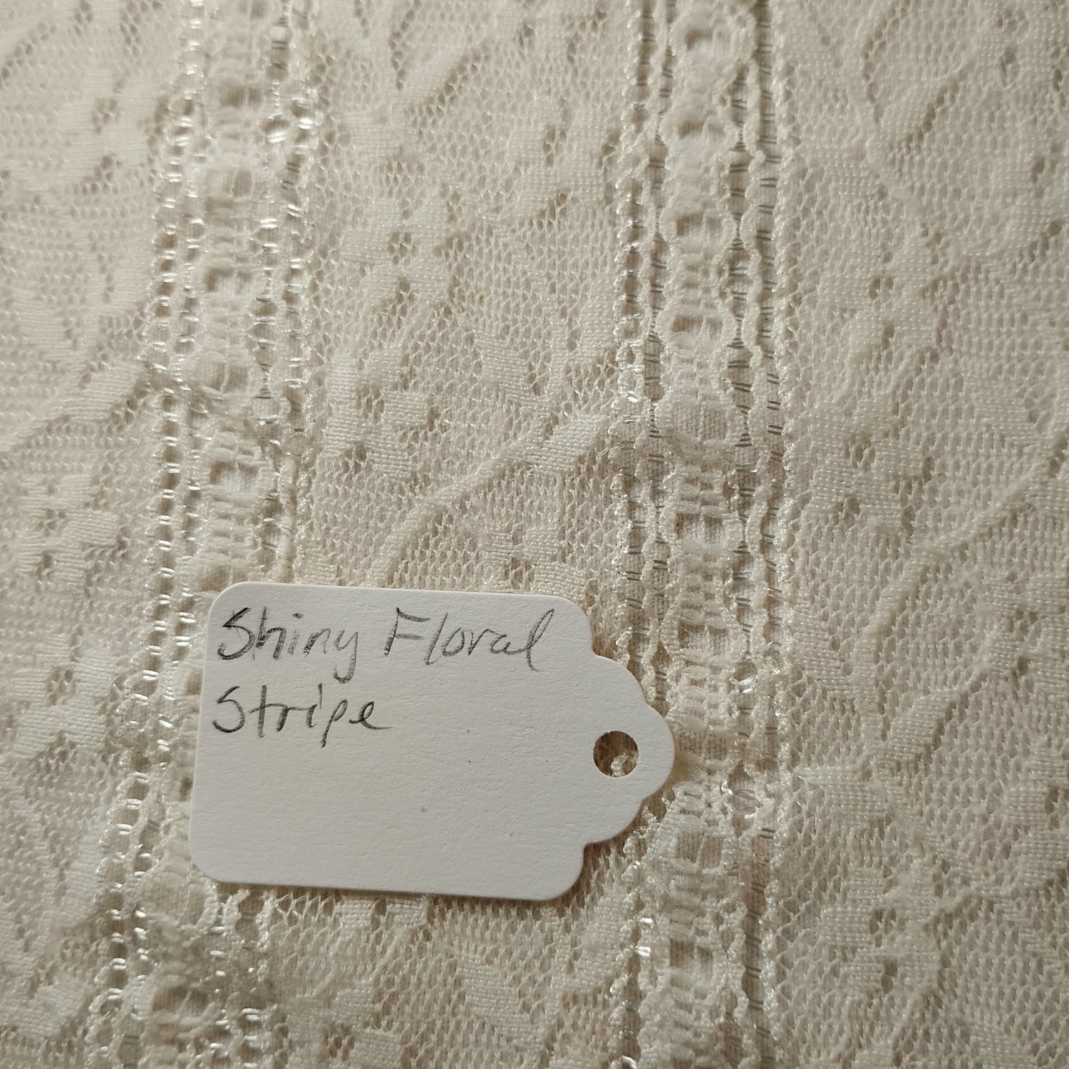 A delicate lace with stripes that glint in the light when seen at an angle.