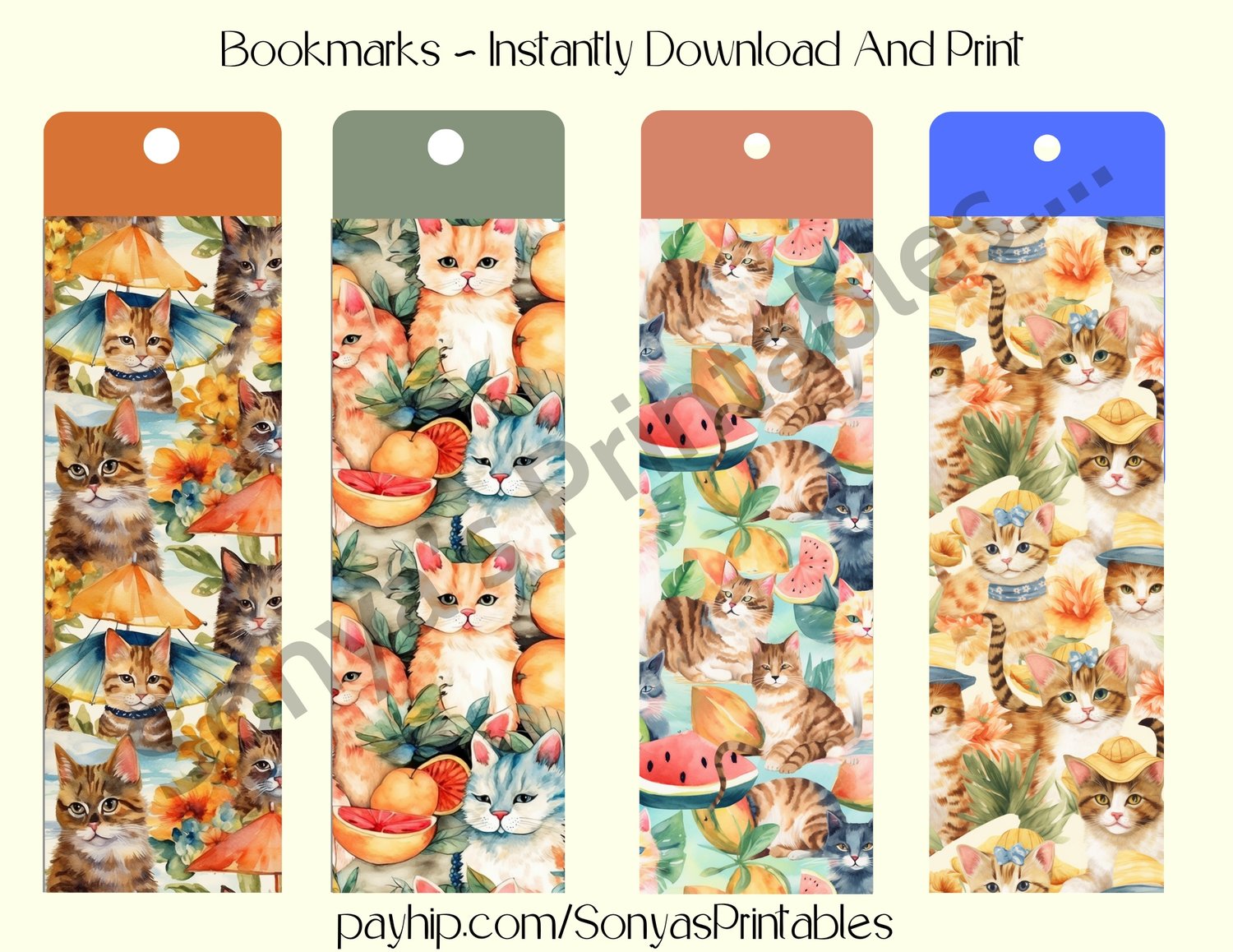 Summer Cat Bookmarks | Printable Summer Cat Bookmarks | Gift For Readers