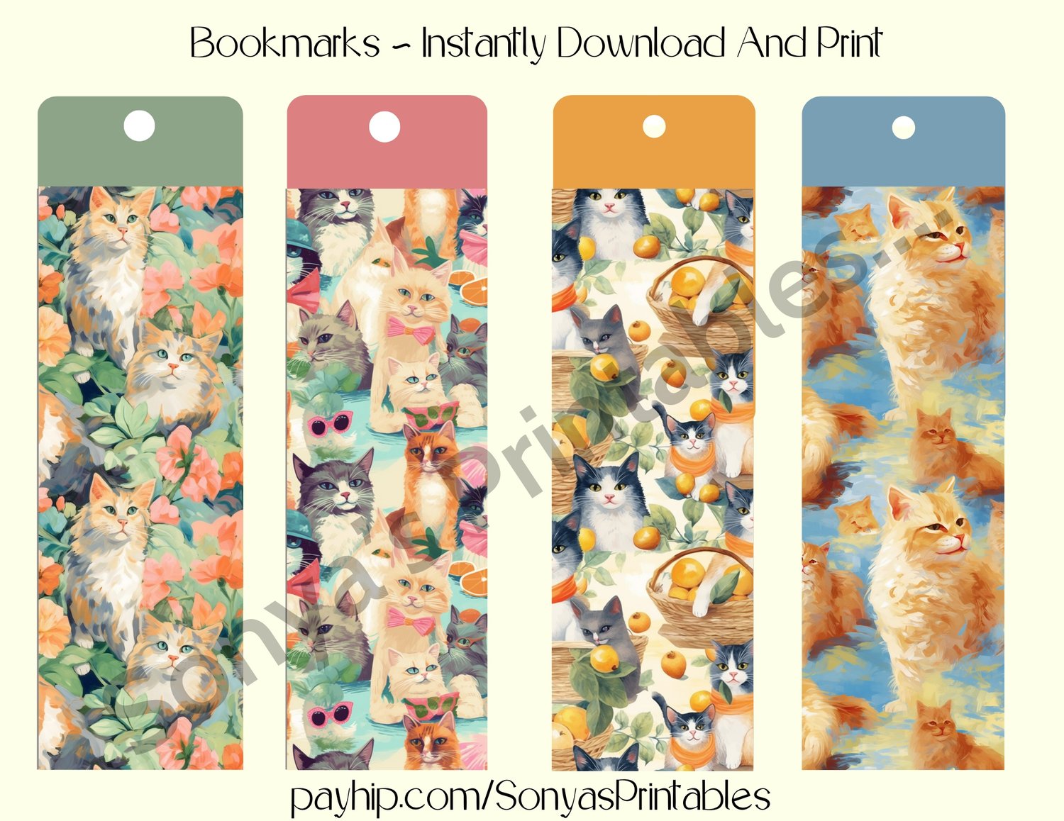 You'll receive two PDF pages, containing 8 Summer Cat Bookmarks. I suggest you print these on cardstock for this digital download. Remember, as with all of my items, you'll be able to print and reprint these bookmarks as many times as you want. Just save the file to your computer.