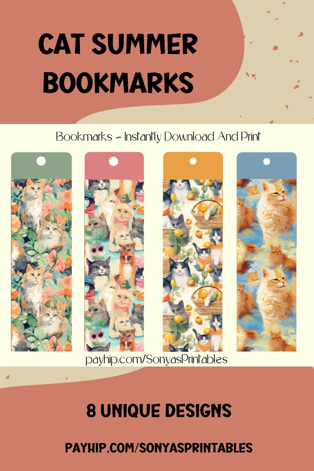 - Each Bookmark Features Summer Cat Graphics: From cats lounging on the beach to kittens sipping on fruity drinks, these bookmarks are the epitome of summer vibes.
