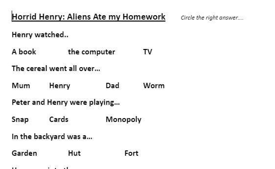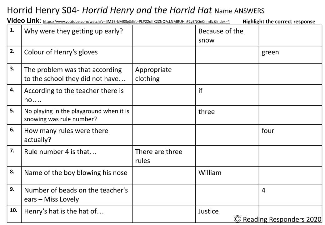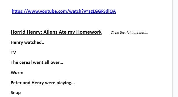 Horrid Henry Video Listening response sheet collection - with video links!