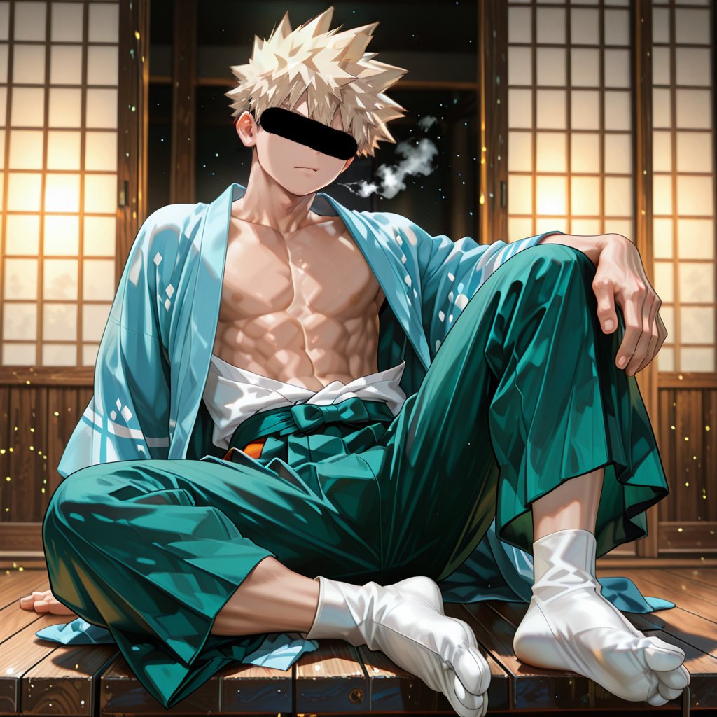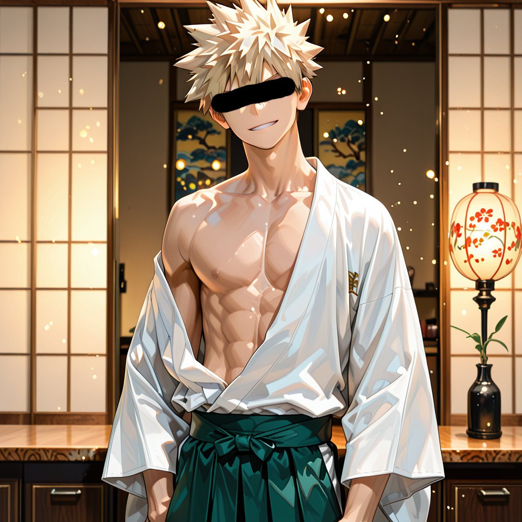日本の正月をテーマに、着物を着用している男性を、キャラクターごとにお任せ作成しました。男らしいキャラクターの魅力を思い切って表現しました。