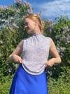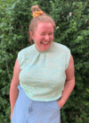 Oh My Belle Top is a seamless top-down stockinette design. The back and front parts are worked flat until below the armholes, from where it’s joined and worked in the round. The pattern is relatively simple but interprets traditional techniques such as cables and picking up stitches to create folds and seams for a look inspired by the world of sewing. The hems are folded with picot edges and I-cord is used for the bow strands. Get inspired on Instagram on #OhMyBelleTop.