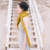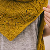 The versatile shape of elongated triangles means you can wear it as a shawl, a scarf, or however you please. Leila’s triangular shawl is knitted from the center neck to bottom edge, featuring easy slipped-stitch cartridge rib with a textural border of gilded botanical lace—quick to knit and irresistible in sport weight Chickadee.