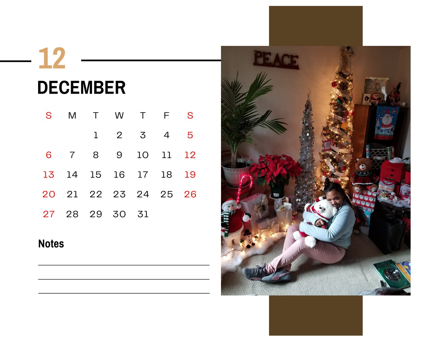 Customized calendar with your favorite pictures and yes, the background can be changed or remain with the background that's in the original picture! 13 Pages Size 11×8.5
