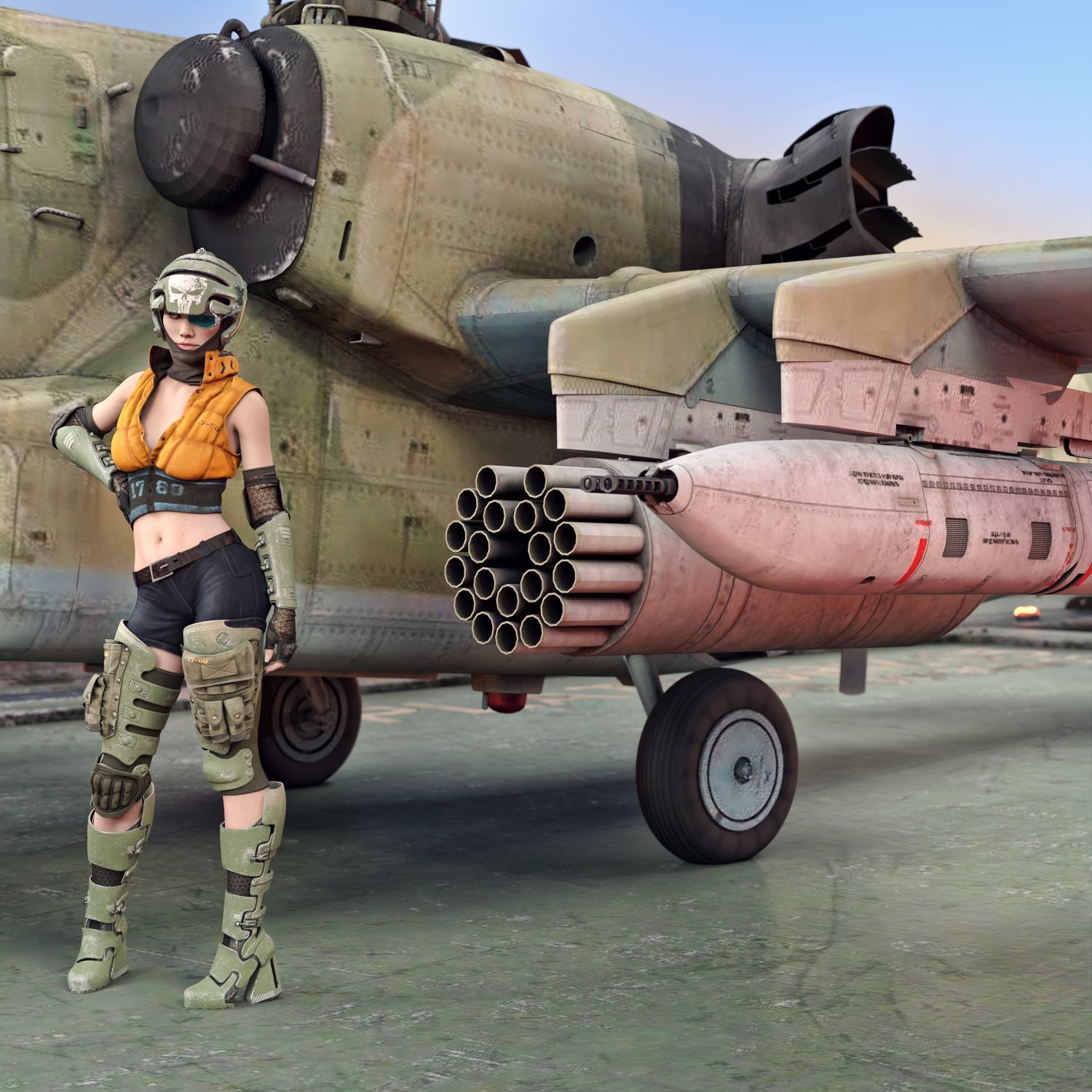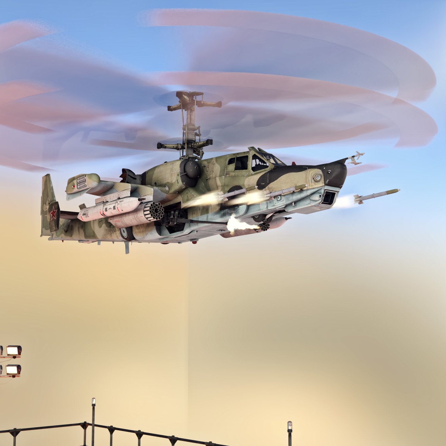 A famous and very cool looking attack helicopter, the Black Shark, for your special operations, infantry support and anti-armor missions. This variant is a single seat one, though some 2 seats were developed too. Very useful, mobile and serious flying vehicle. Converted and rigged for use in DAZ. Includes rocket launchers on the wings and cannons. Packs some serious fire power with exceptional mobility.