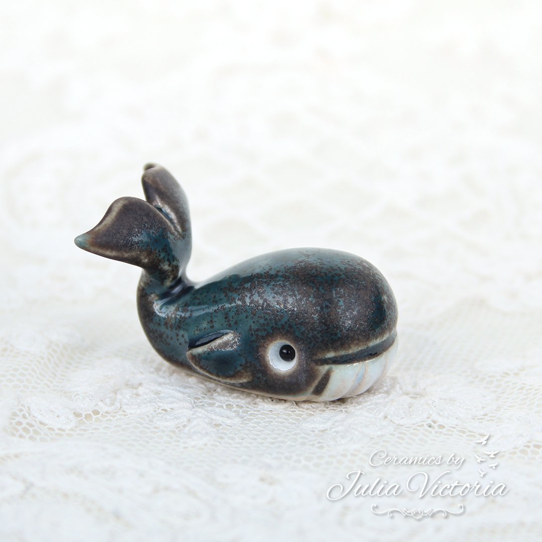 This little blue whale is looking for a new home. It is hand-sculpted in ceramics, glazed and painted by me