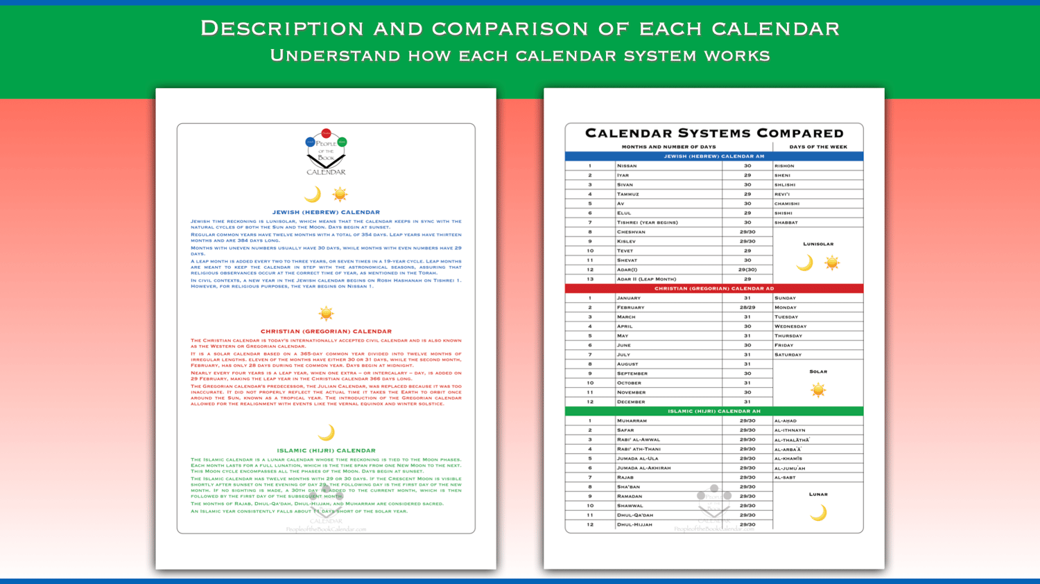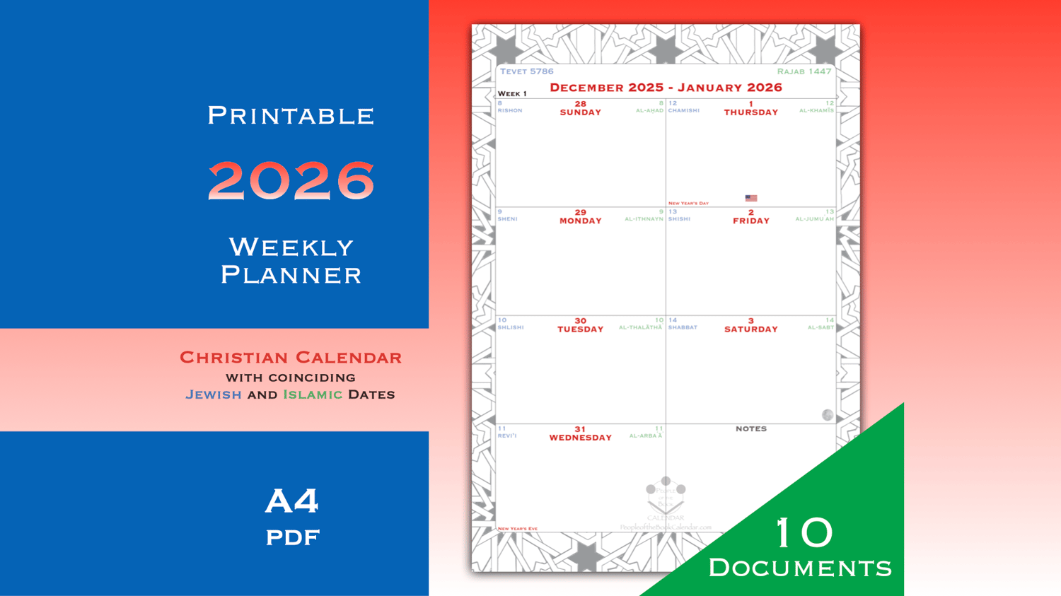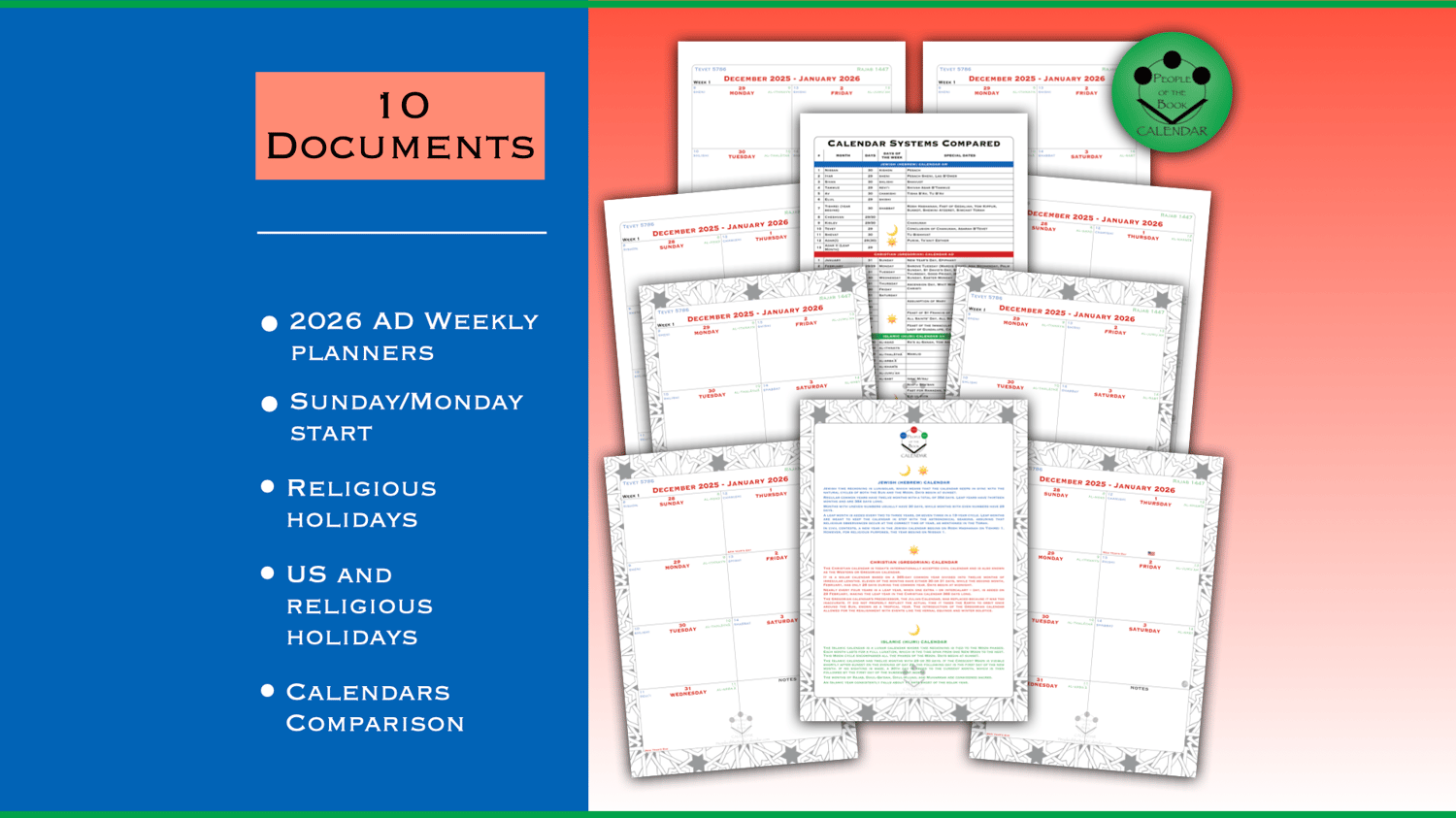 Jewish, Christian and Islamic calendars combined into one. I call it the People of the Book Calendar, referring to the "people of scripture", specifically that of the three Abrahamic monotheistic religions.