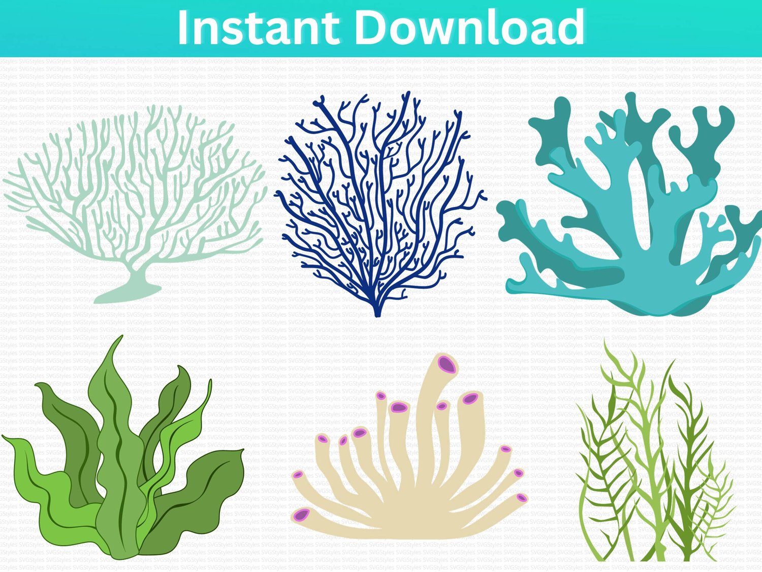 Coral SVG Coral Reef SVG Bundle. Seaweed Sea Fan Ocean Beach Marine Nautical Clipart cut file
