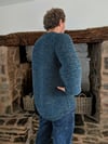 Sample 2 shows the back only hem shaping option. It was knit with 2 strands of Drops Karisma 100m (109yds) per 50g. Colours ’16 – Dark Grey Mix’ and ’73 – Petrol’. The sweater shown is a size 4 worn with approximately 2” (5cm) positive ease.