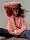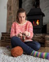 This easy to wear jumper was originally designed for my daughter. It quickly became her favourite cosy knit and I knew I needed one for myself too. Is personifies warm squishy cuddle. It boasts a simple, seamless design in a chunky weight yarn. The texture created by the garter stitch means this is a super versatile, comfy cosy garment. Garter Squish is top down, knit in the round and uses short rows to shape the neckline. It has two style options for the bottom hem shaping. Interest is added by the seamless joining of the rib neckline into the slipped stitch raglan stitches which then continue through the body and sleeves. This creates a faux seam appearance and gives the garment extra ‘squish factor!’.