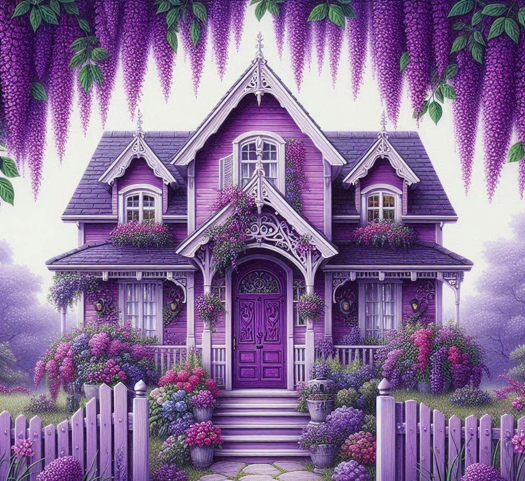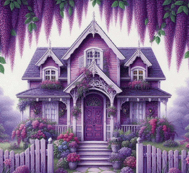 Purple House Cross Stitch Pattern, PDF Instant Download