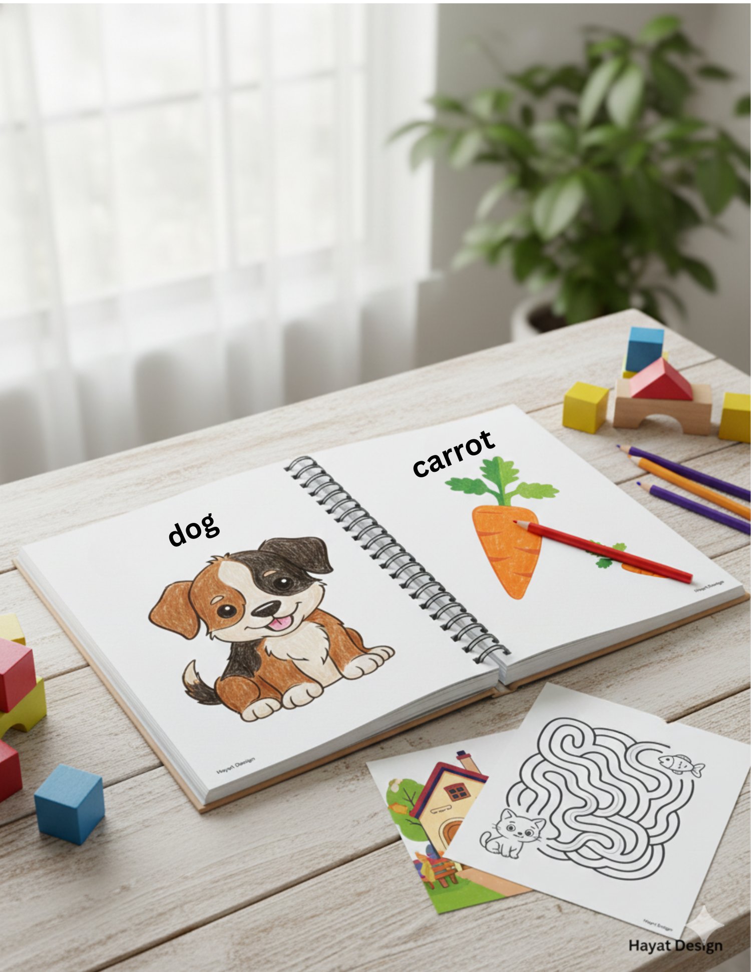 "Unlock your child's creativity with this 37-page Educational Activity Book. Featuring fun coloring exercises, vocabulary building, and fine motor skill tasks. Perfect for preschoolers. Instant PDF download!"