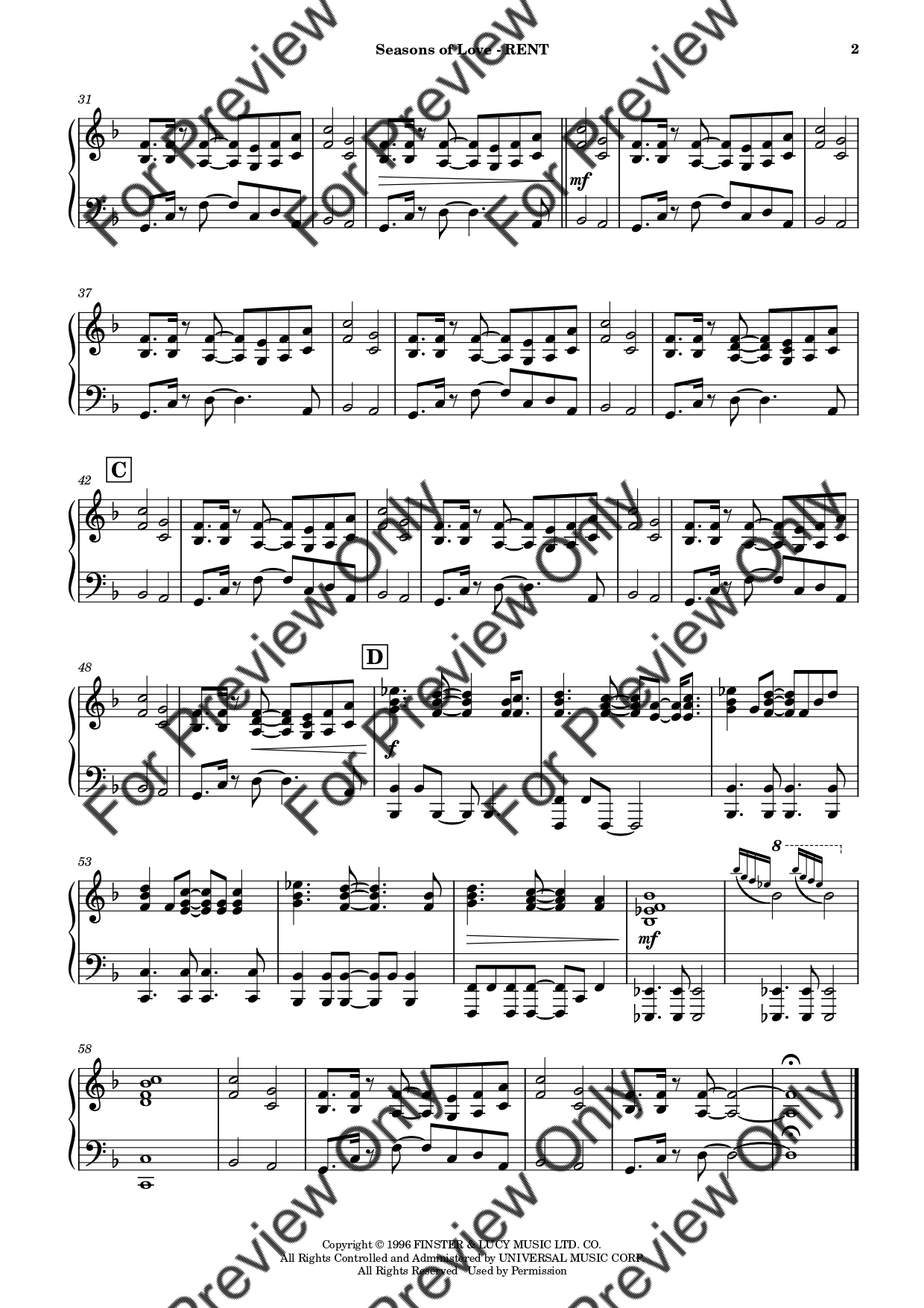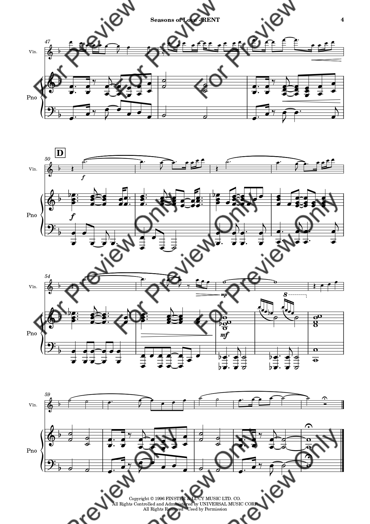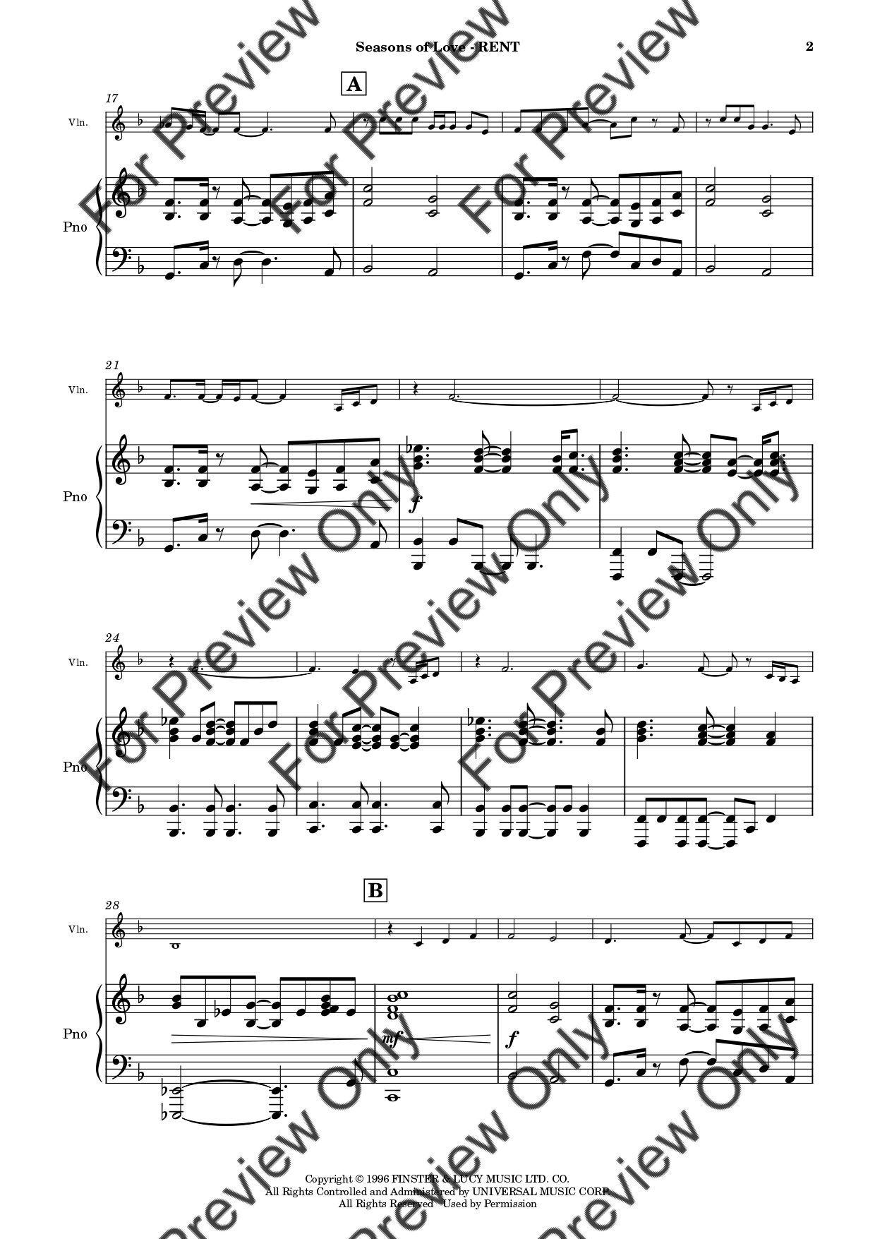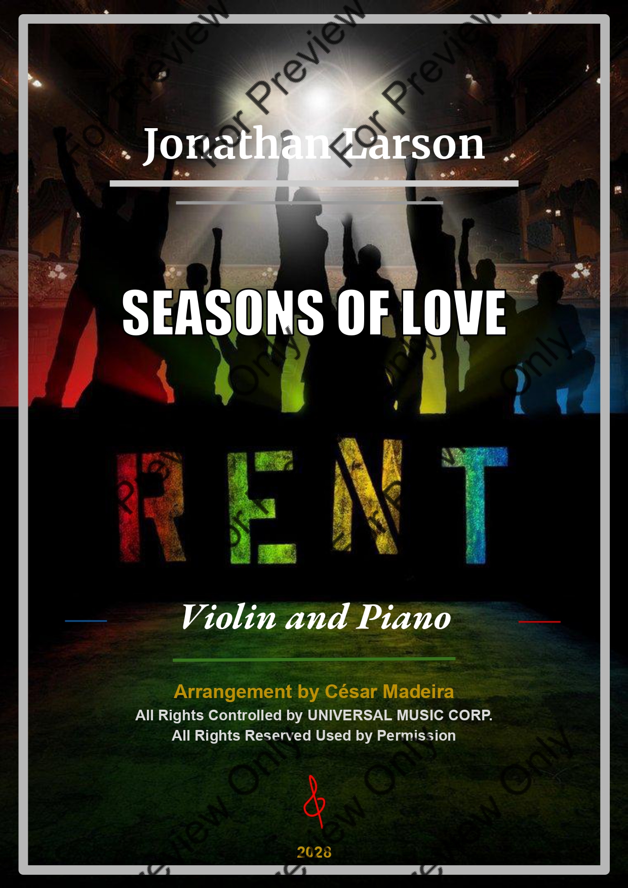 Seasons Of Love from RENT by Jonathan Larson. Arrangement for Violin and Piano. With Full Score and Individual Parts. Have fun!