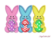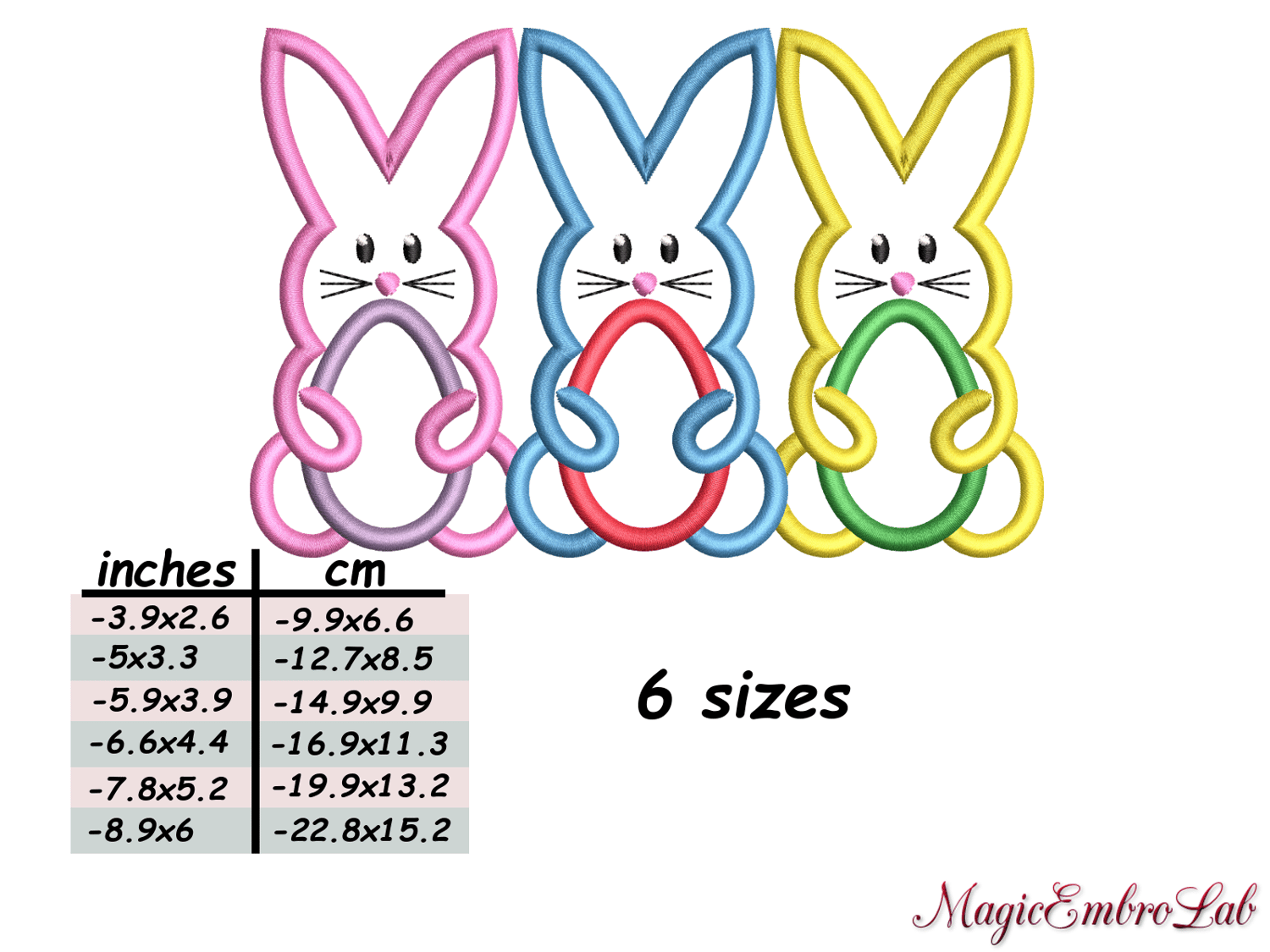 Bunny Trio APPLIQUE, 6 sizes, Instant Download