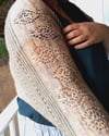 Gauge: 4” (10 cm) on 4 mm / US 6 needles (after blocking)