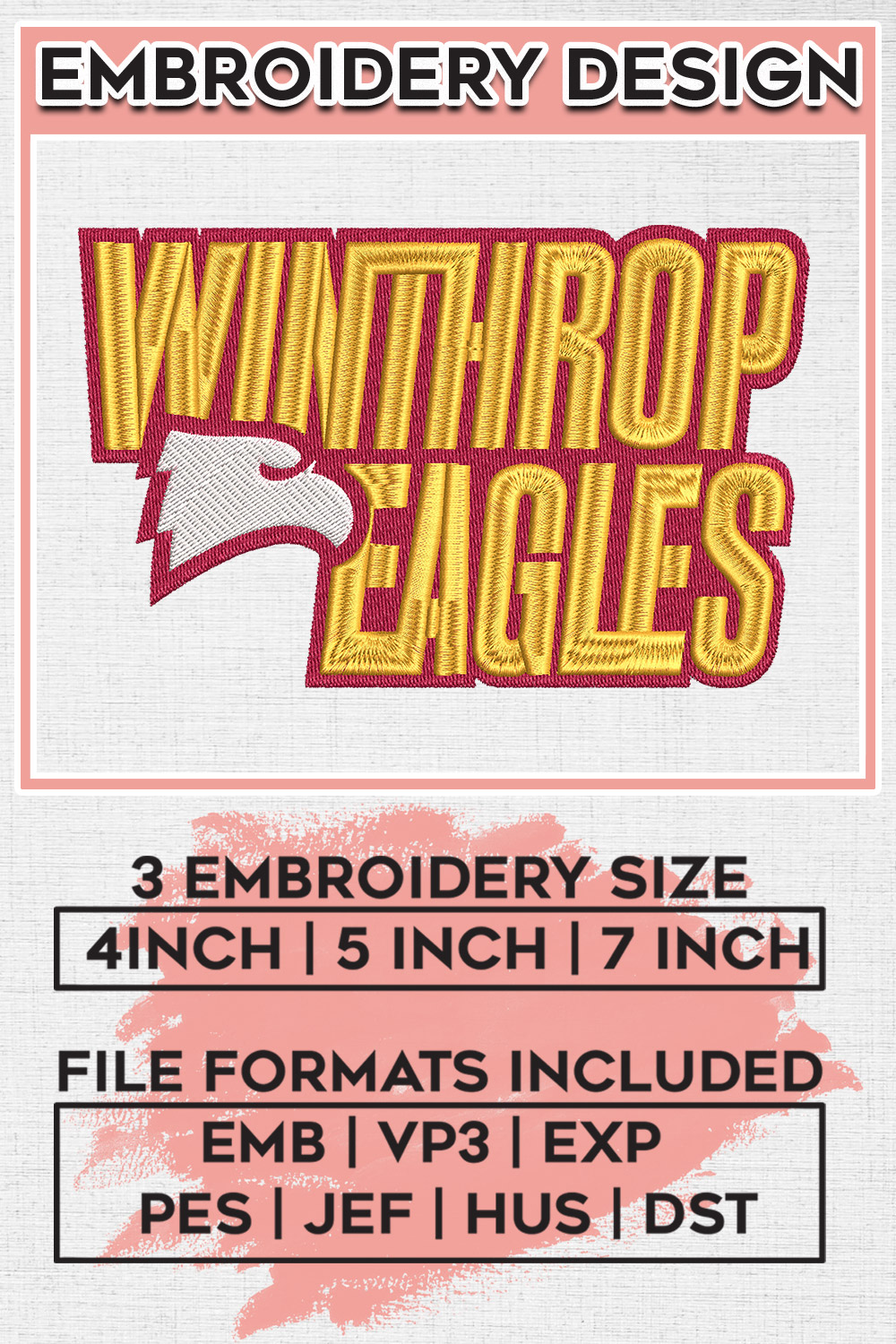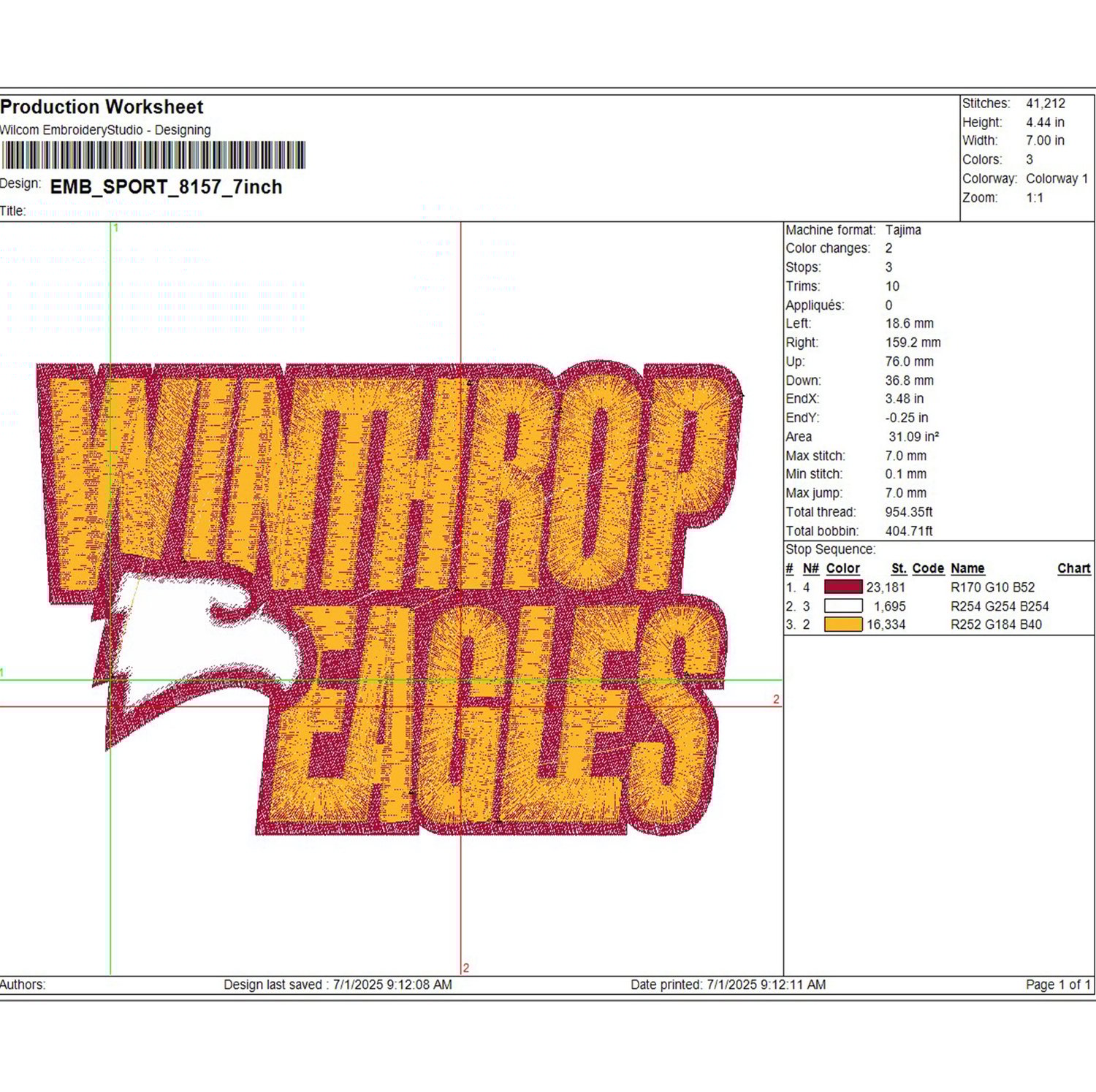 NCAA Winthrop Eagles Football Team Writing Logo Embroidery Files, NCAA Winthrop Eagles Team Embroidery, NCAA College Football Teams, Winthrop Eagles Team Emroidery, 3 sizes, Machine embroidery designs, Digital Down