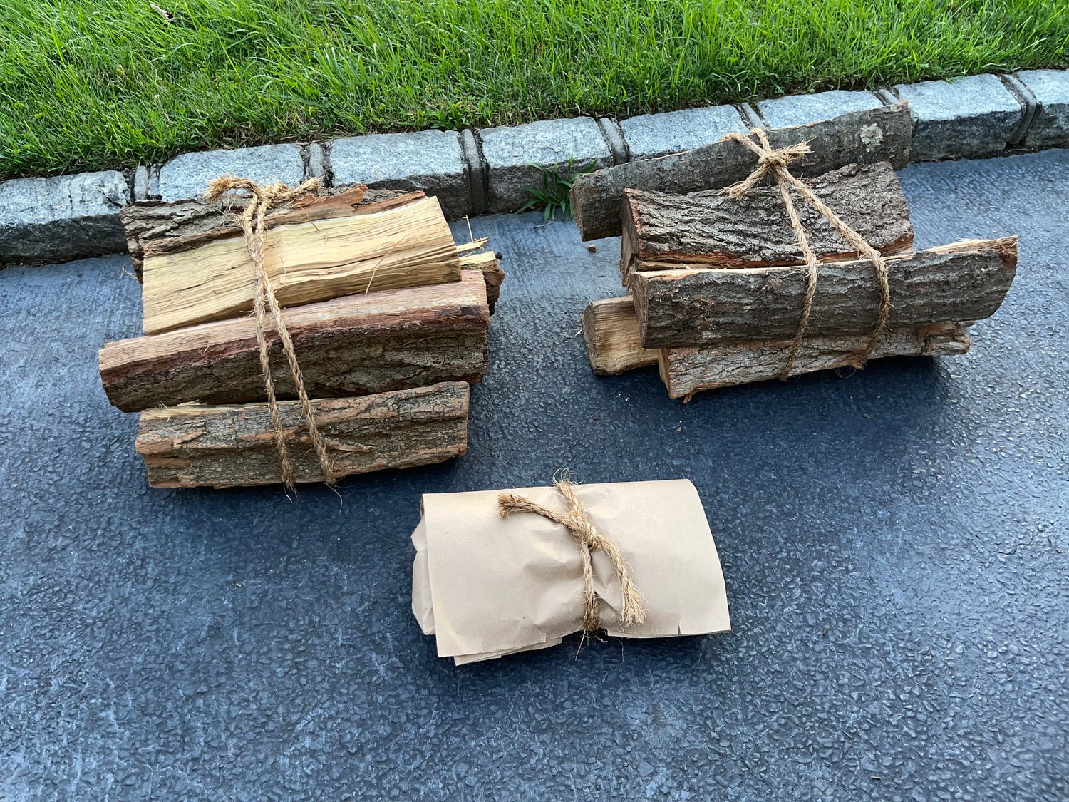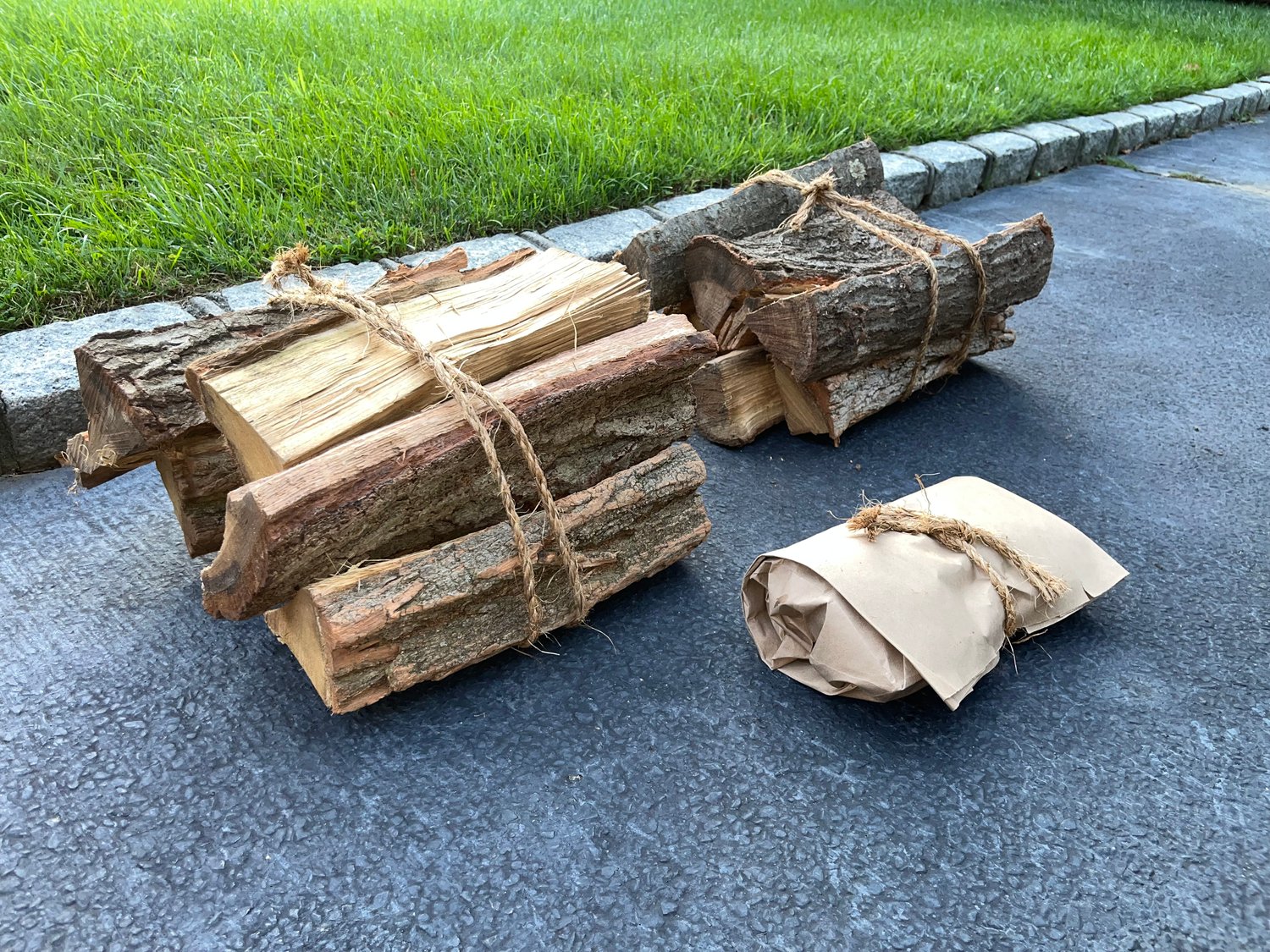 2 bundles of firewood (6+ logs each), and one package of kindling