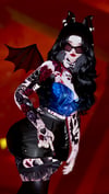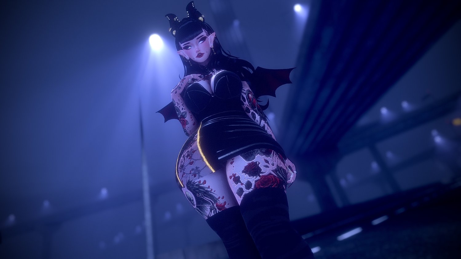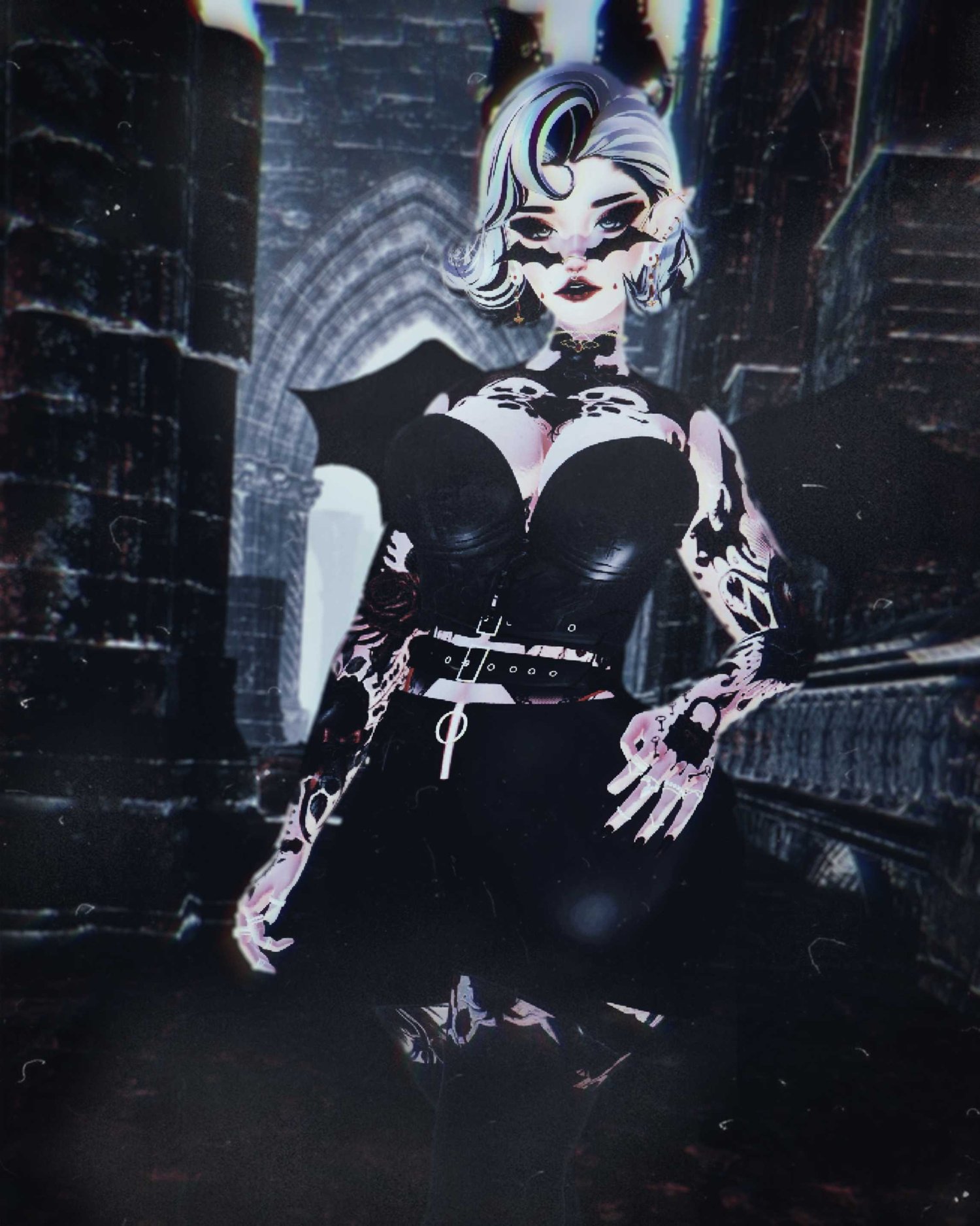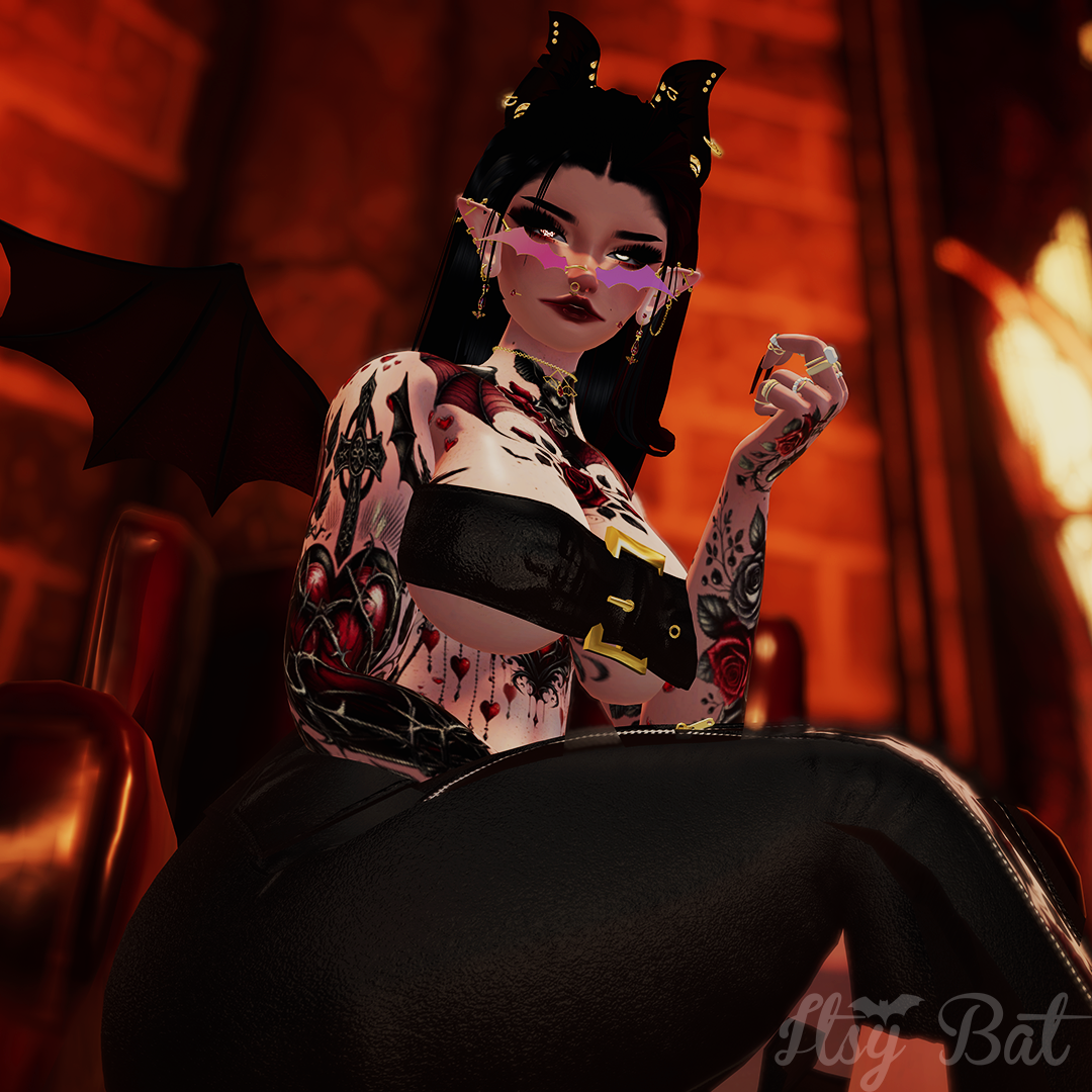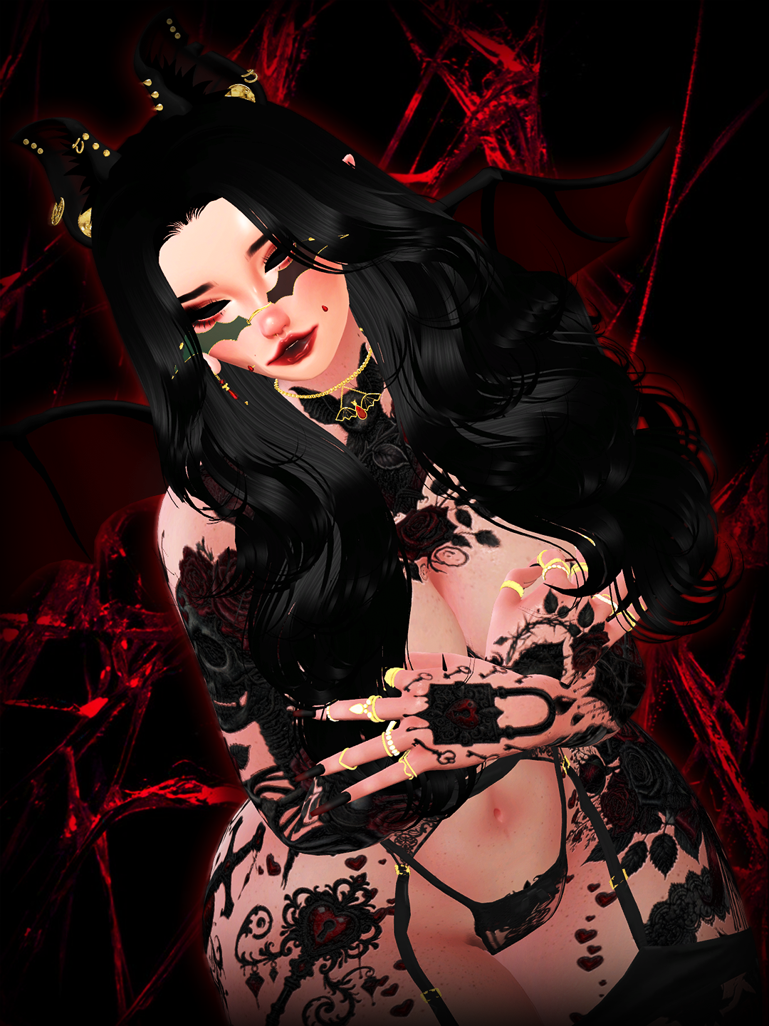 She’s a gothic pinup bat with a wicked little smile—soft where it counts, sharp where it matters. Her wings frame her perfectly, her gaze lingering just long enough to make you wonder if it was on purpose. She loves to pose, to tease, and to see how close you’ll get before you realize you’re already hooked. Sweet charm, dark temptation, and a presence that knows exactly what it’s doing.