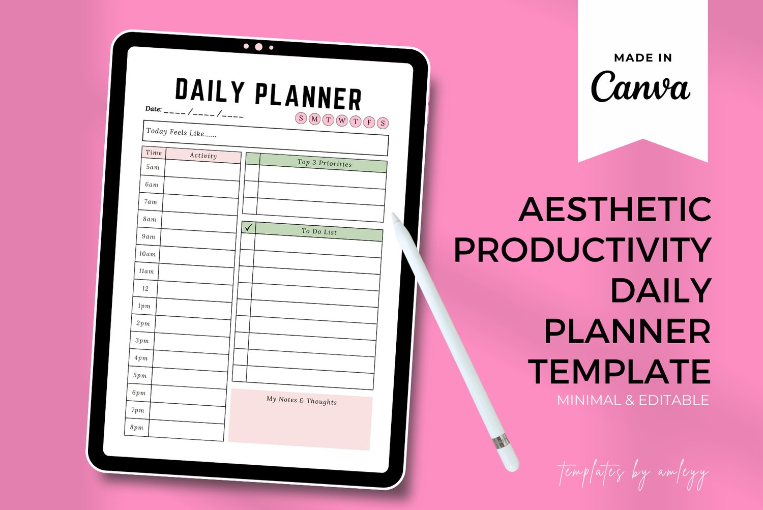Aesthetic Productivity Daily Planner Canva Template | Editable Daily To Do List | Printable & Digital Planner