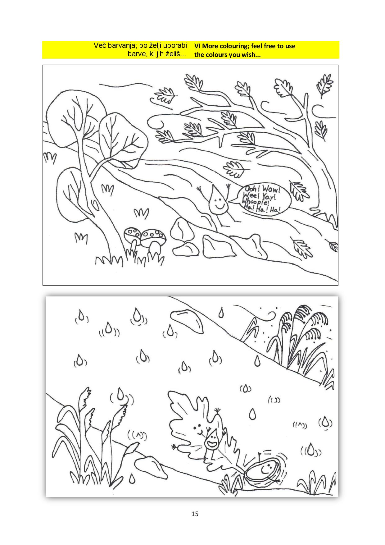 - zgodba je dolga približno 10 strani z ilustracijami v zgornjem delu in besedilom na spodnji polovici strani