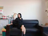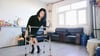 Carrie: The Polio Lady's ground-to-sofa transfer using assistive walking devices.