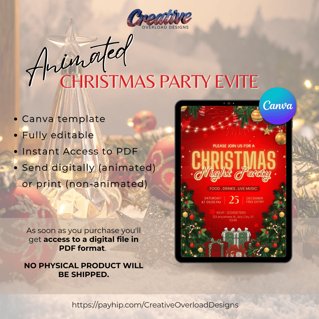 Editable Animated Christmas Party Flyer Template (Canva)