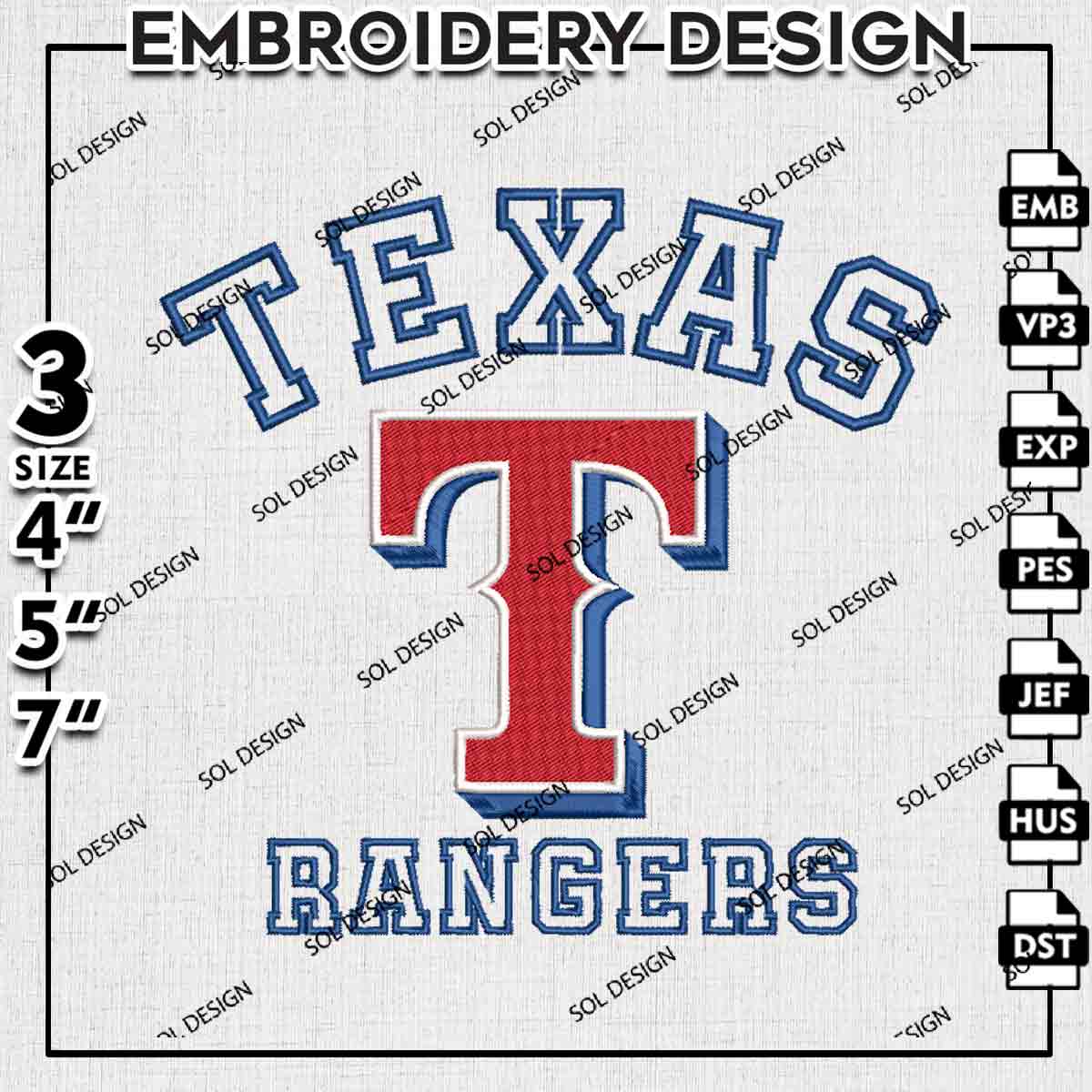 Texas Rangers MLB Word Logo Embroidery Designs, MLB Rangers Team Embroidery Files, Baseball League Logo Embroidery, Texas Rangers Team Machine Embroidery Design, 3 sizes, Digital Download