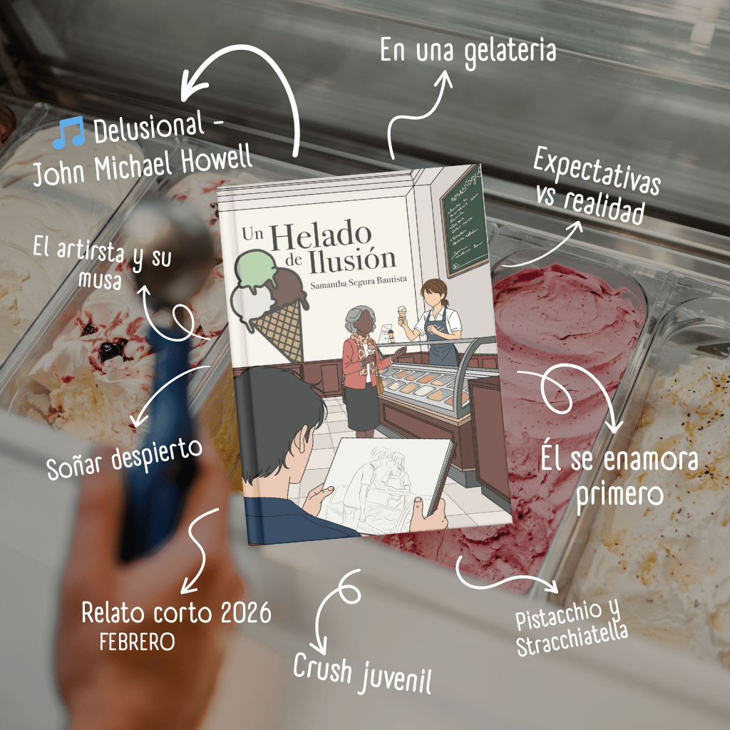 Un joven ilustrador, con más imaginación que valentía, cruza la ciudad para llegar a la misma gelateria de siempre. No va por el helado, aunque siempre pide el mismo sabor. Va por ella. La chica que sirve detrás del mostrador y que, sin saberlo, se ha convertido en la protagonista silenciosa de sus cuadernos y de sus fantasías más dulces.