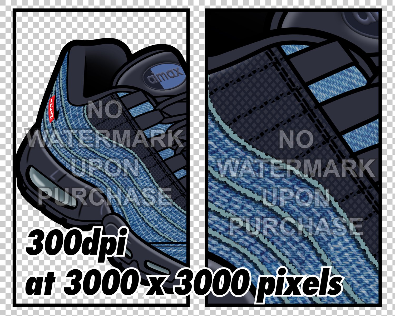 Air Max 95 x Levi's Obsidian JPEG PNG digital sneaker art