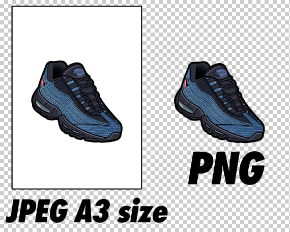 Digital Sneaker Art downloadable files in JPEG, PNG.