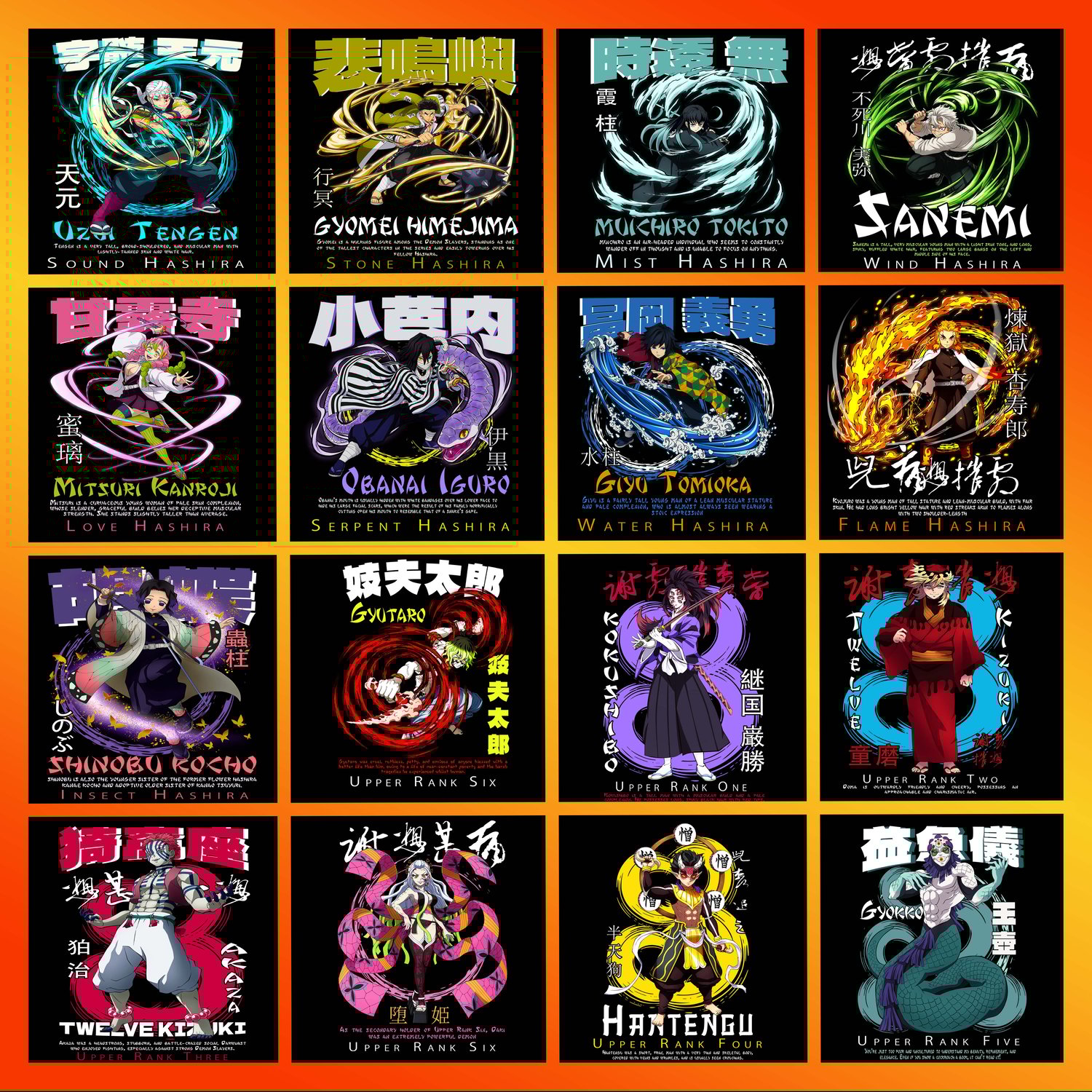 - All Hashira (Sound, Insect, Wind, Water, Love, Serpent, Mist, Flame, Stone)