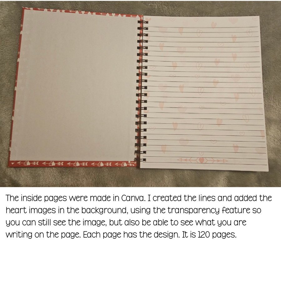 - Created with specialty paper and notebook inserts were created in Canva