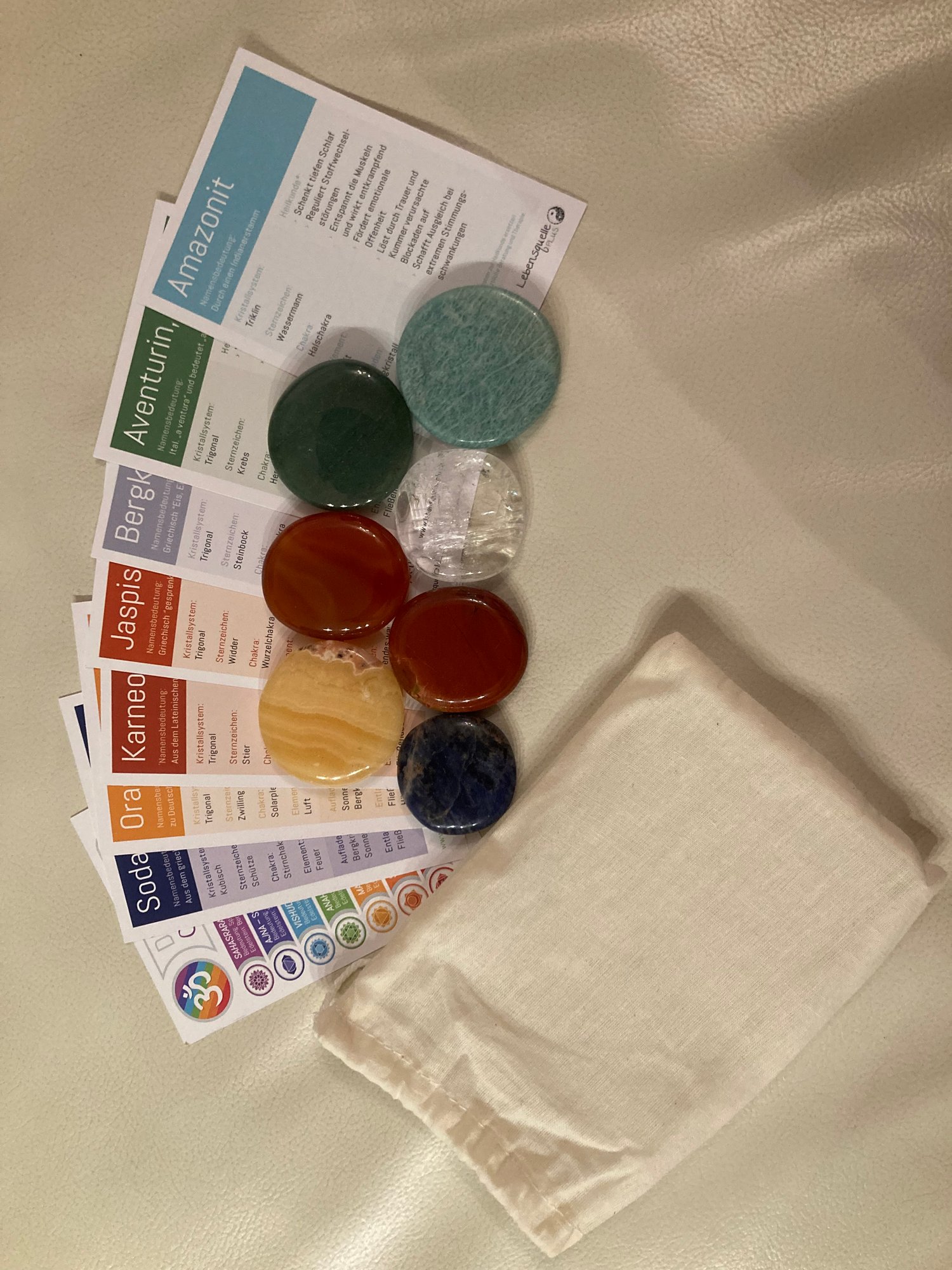 - 7 Schöne, flache Scheibensteine ca. 3-5 cm im Durchmesser und 0,5-1 cm in der Höhe.