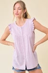 Ruffle Sleeve Button Down Sleeveless Top - Lavender / $19.99