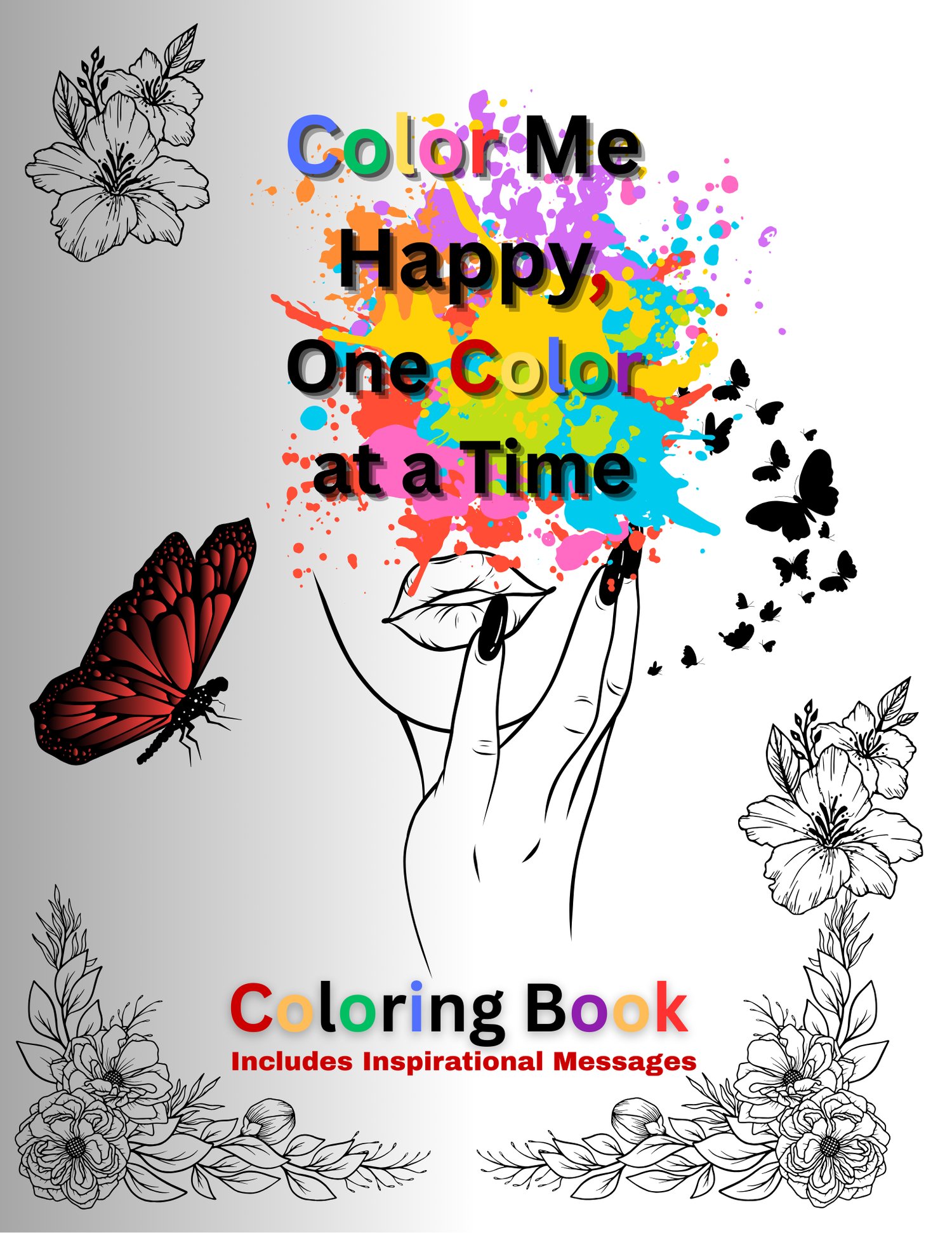 Unlock your creativity with "Color Me Happy: One Color at a Time!" This vibrant coloring book is designed to inspired joy and artistic expression for women of all ages. Inside you'll find a delightful collection of coloring expressive pages and silhouettes. It is ideal for stress relief, mindfulness or simply enjoying a creative moment. Color Me Happy is more than just a coloring book--it's a journey of happiness and self-discovery. Embrace the joy of coloring and let your creativity flow, one color at a time!