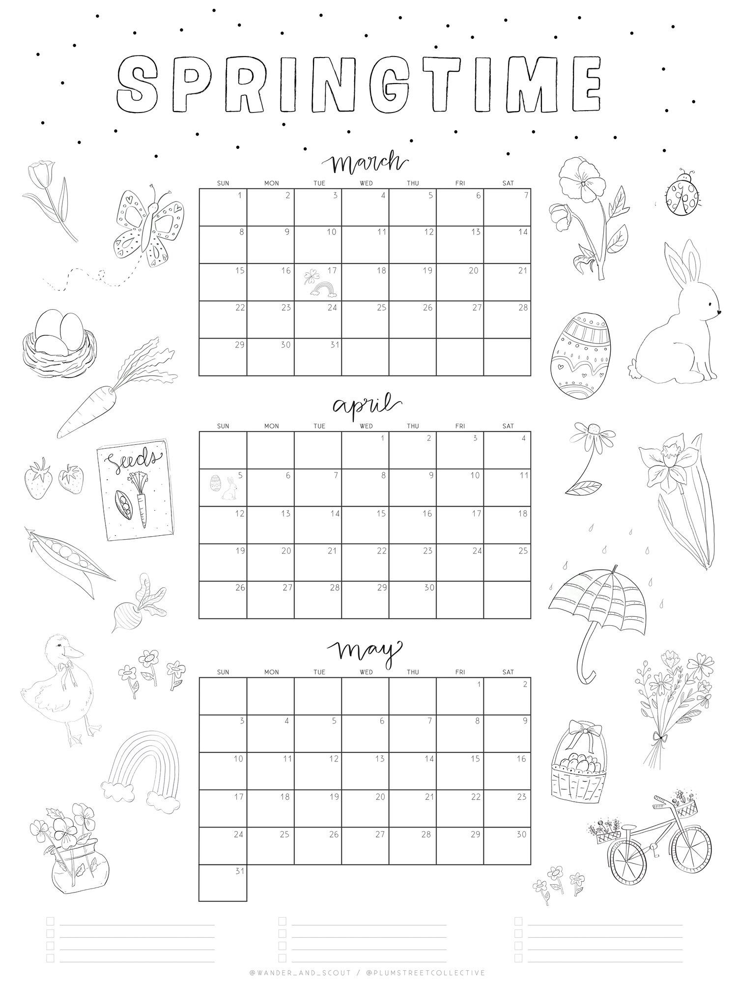 This 2026 Spring Calendar has whimsical doodles for the season, and lines for bucket list items below. It can easily be printed for only a couple dollars at your local Office Supply store, and we’ve got them formatted into the exact sizes you need for easy printing.