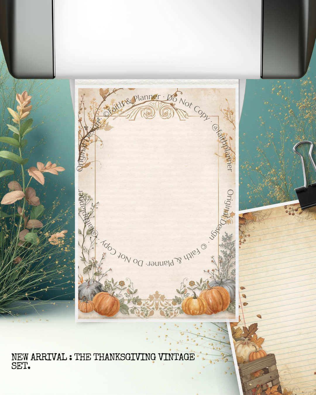 Thanksgiving Vintage Paper Set – 10 A4 Sheets with 20 Cozy Fall Designs | Printable Letter Paper, Scrapbook Pages & Journal Inserts