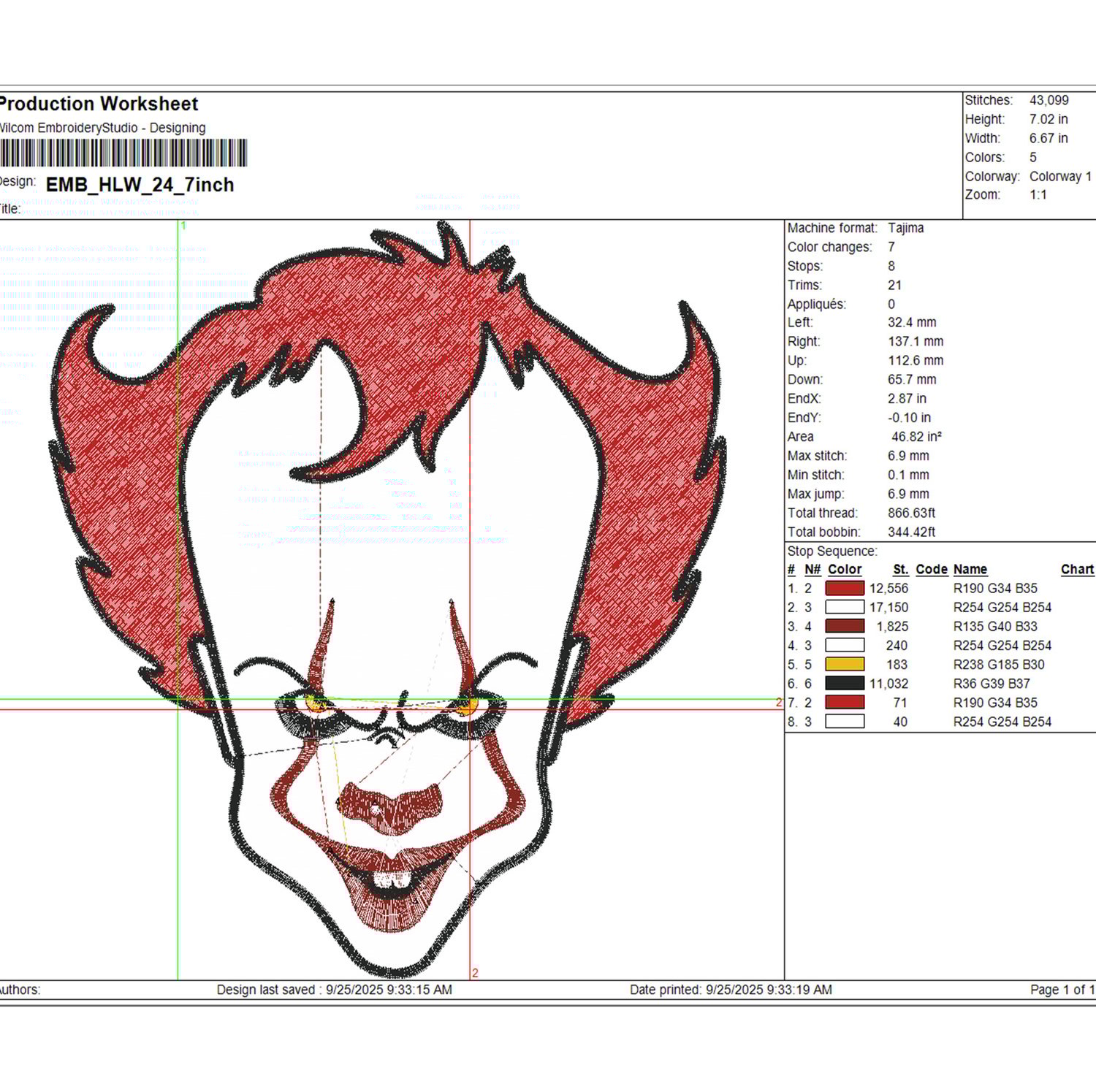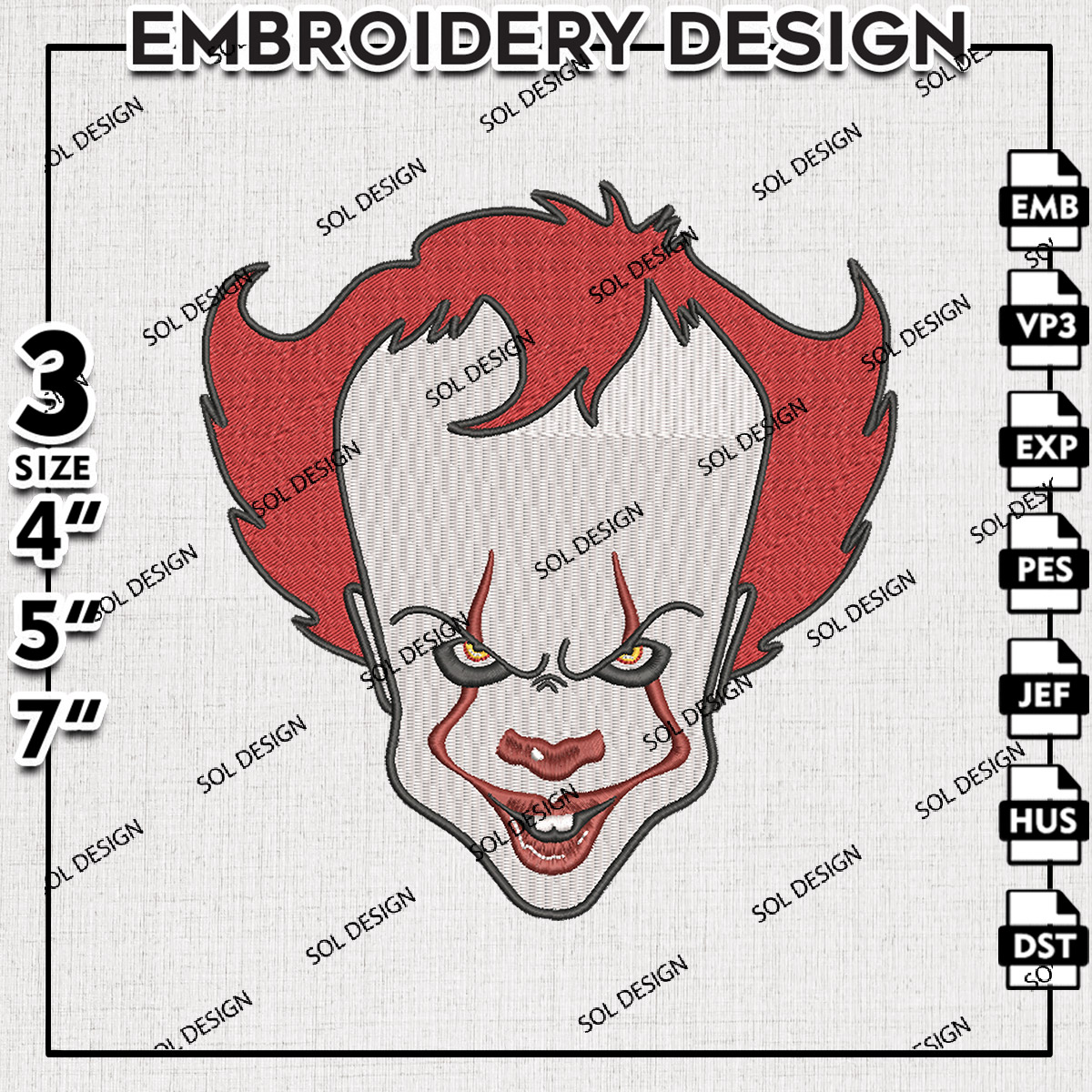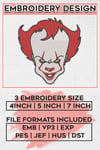 Halloween Pennywise It Embroidery Designs, Horror Character Embroidery Files, Disney Halloween Embroidery, Horror Halloween Machine Embroidery Design, Digital Download
