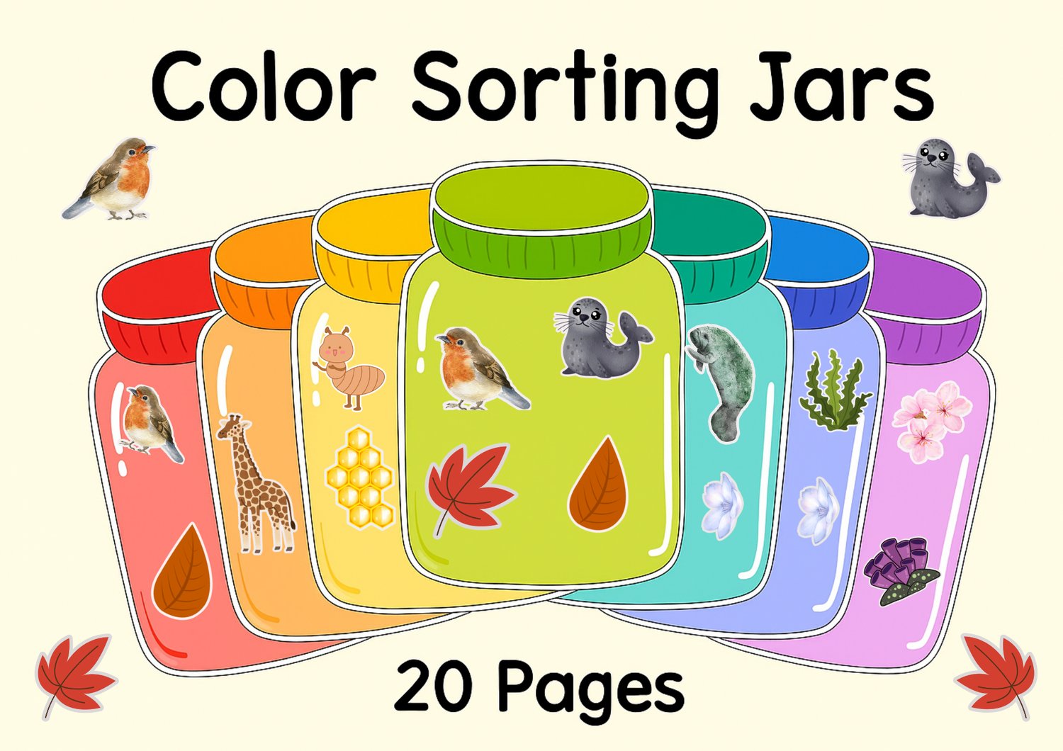 Engaging and fun Color Sorting Jars Printable – 20 colorful pages to teach kids color recognition and sorting!